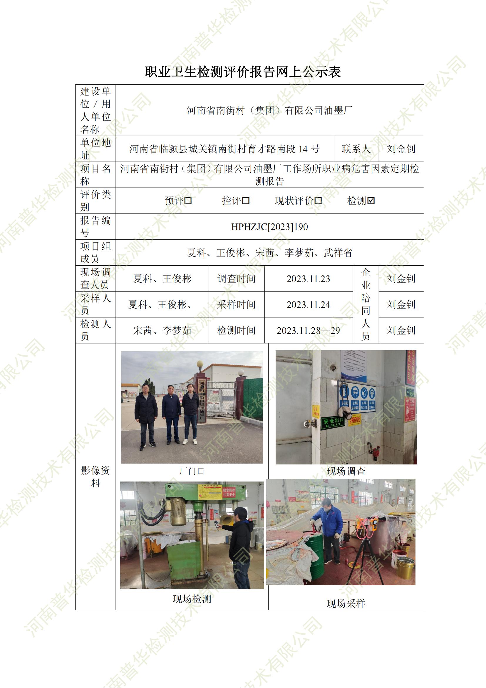 河南省南街村(集團)有限公司油墨廠工作場所職業(yè)病危害因素定期檢測 點擊次數(shù):851 次