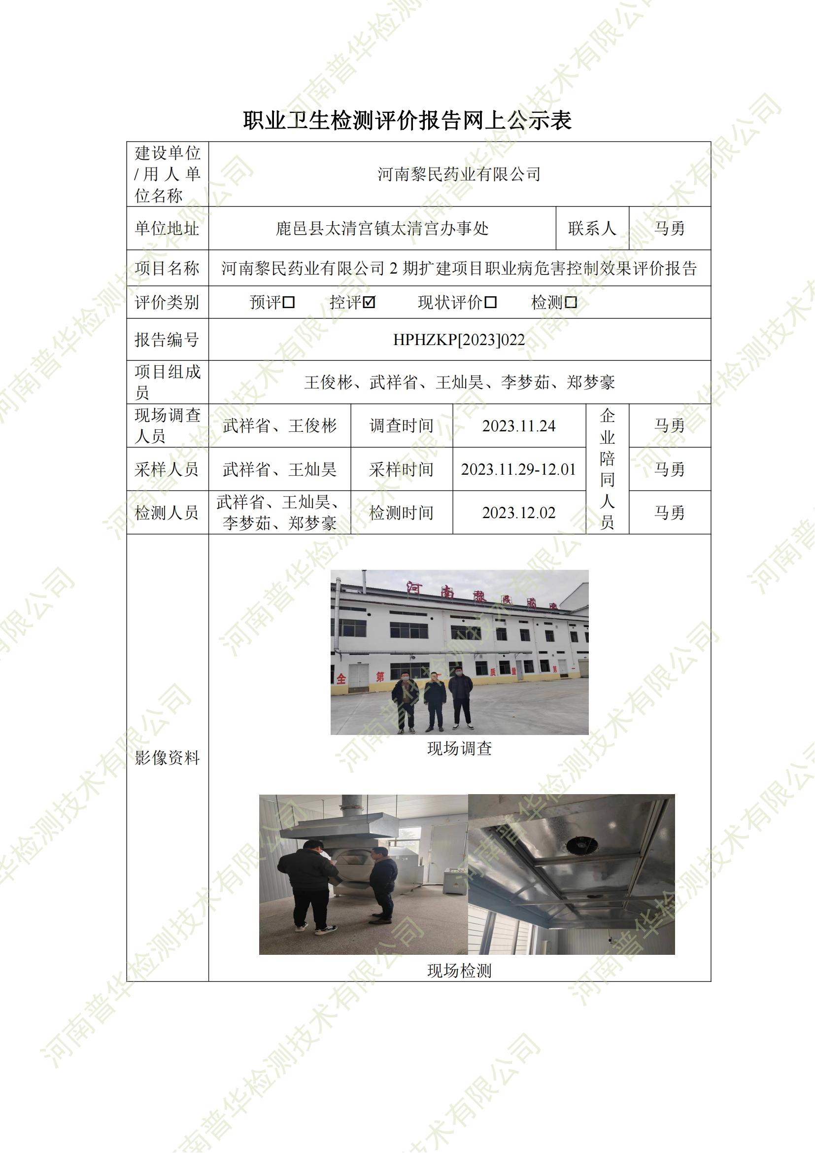 河南黎民藥業(yè)有限公司2期擴(kuò)建項(xiàng)目職業(yè)病危害控制效果評(píng)價(jià) 點(diǎn)擊次數(shù):970 次