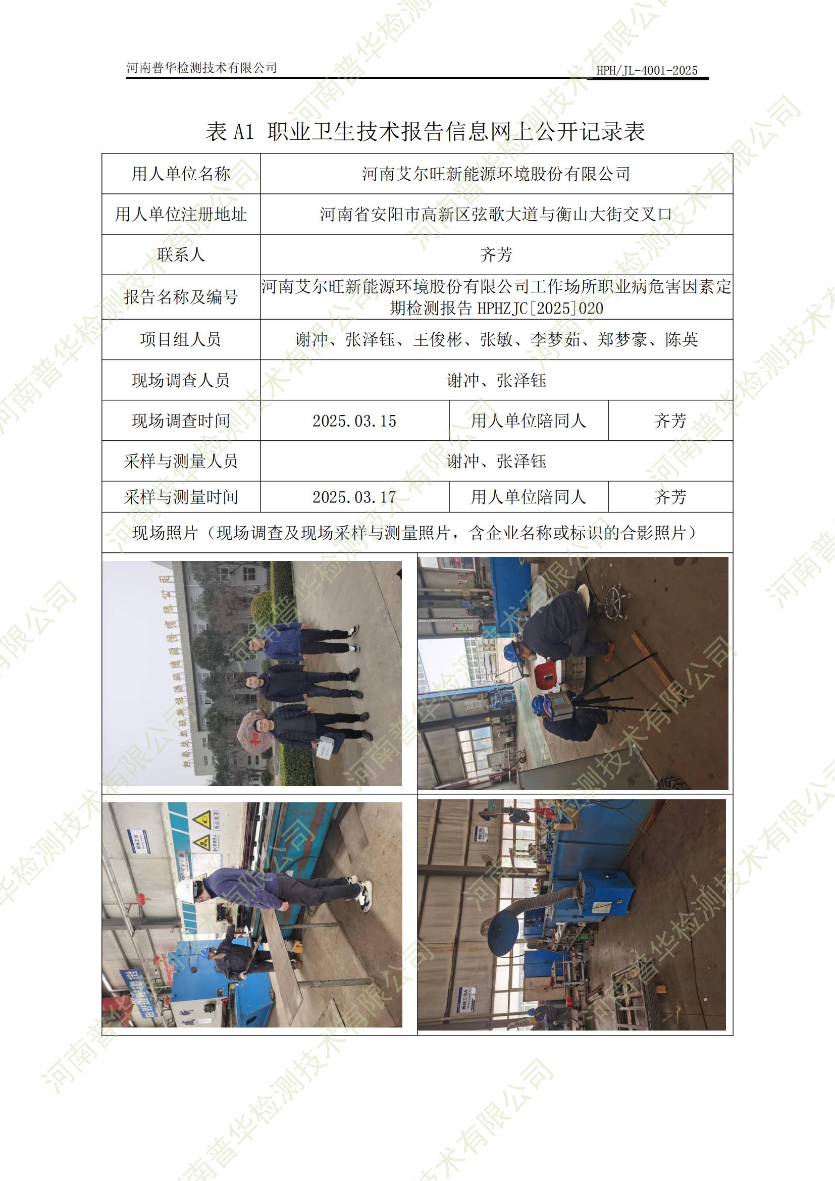 河南艾爾旺新能源環(huán)境股份有限公司工作場(chǎng)所職業(yè)病危害因素定期檢測(cè) 點(diǎn)擊次數(shù):233 次