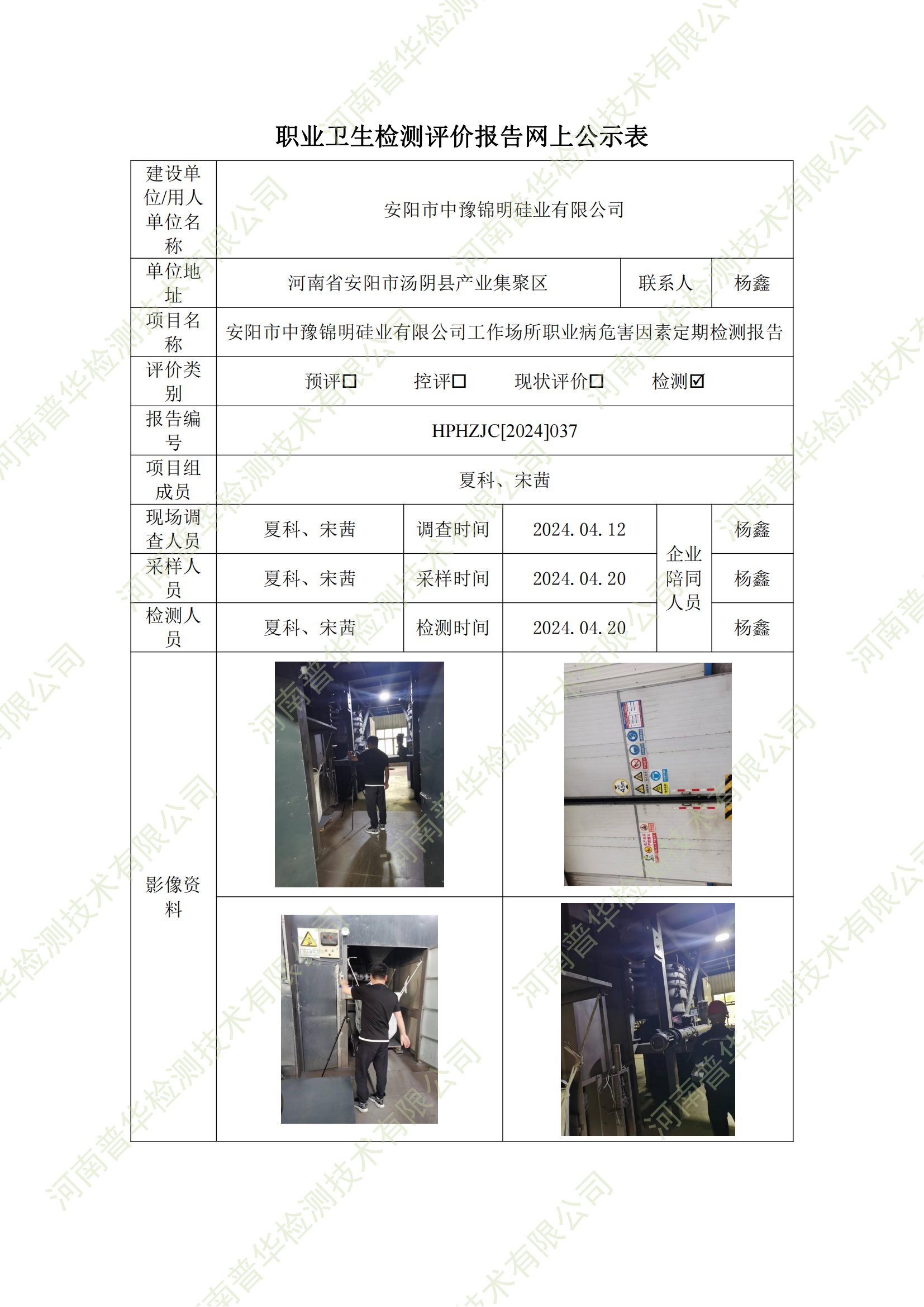 安陽市中豫錦明硅業(yè)有限公司工作場所職業(yè)病危害因素定期檢測 點擊次數(shù):864 次
