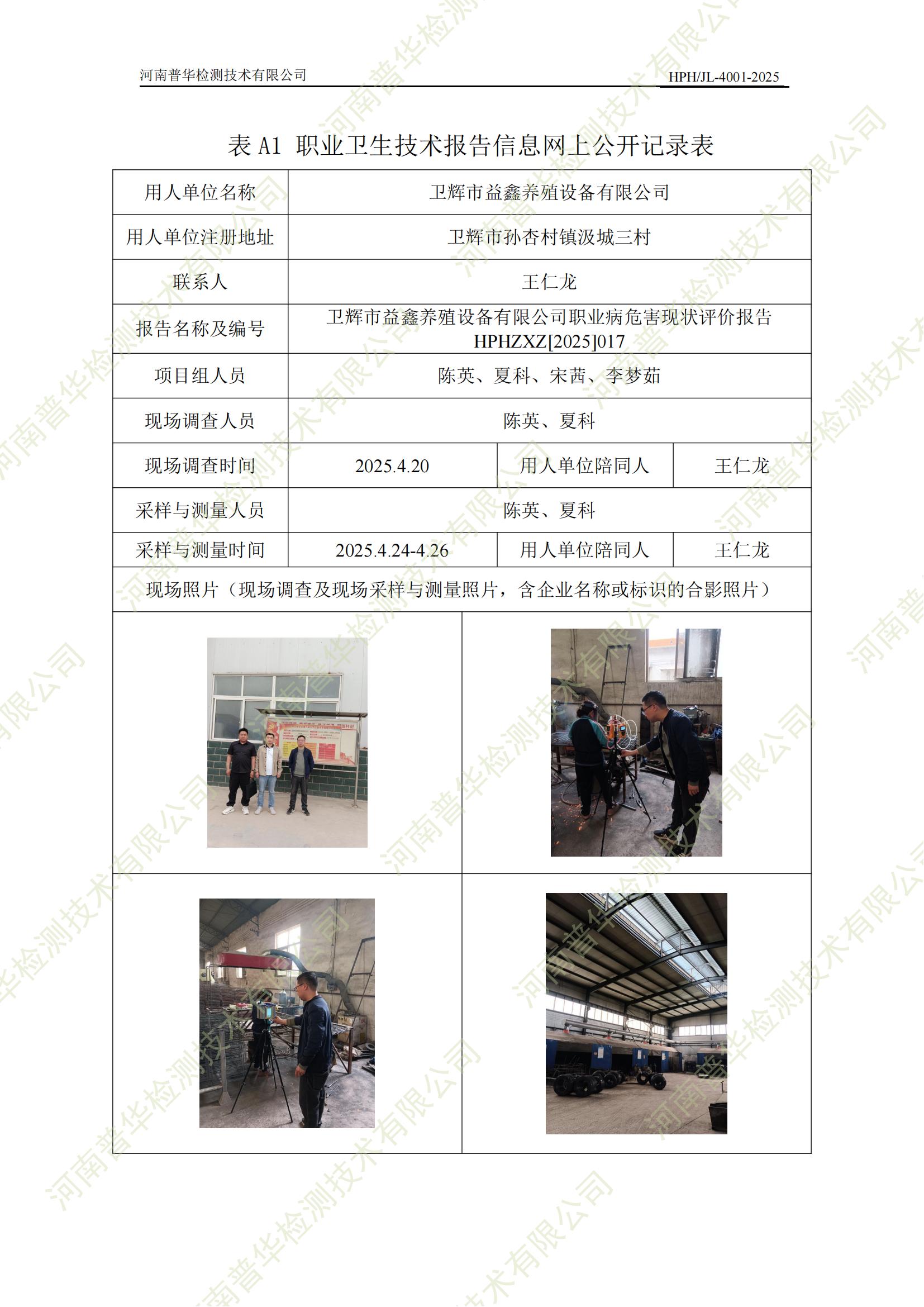 衛(wèi)輝市益鑫養(yǎng)殖設(shè)備有限公司職業(yè)病危害現(xiàn)狀評價 點擊次數(shù):81 次