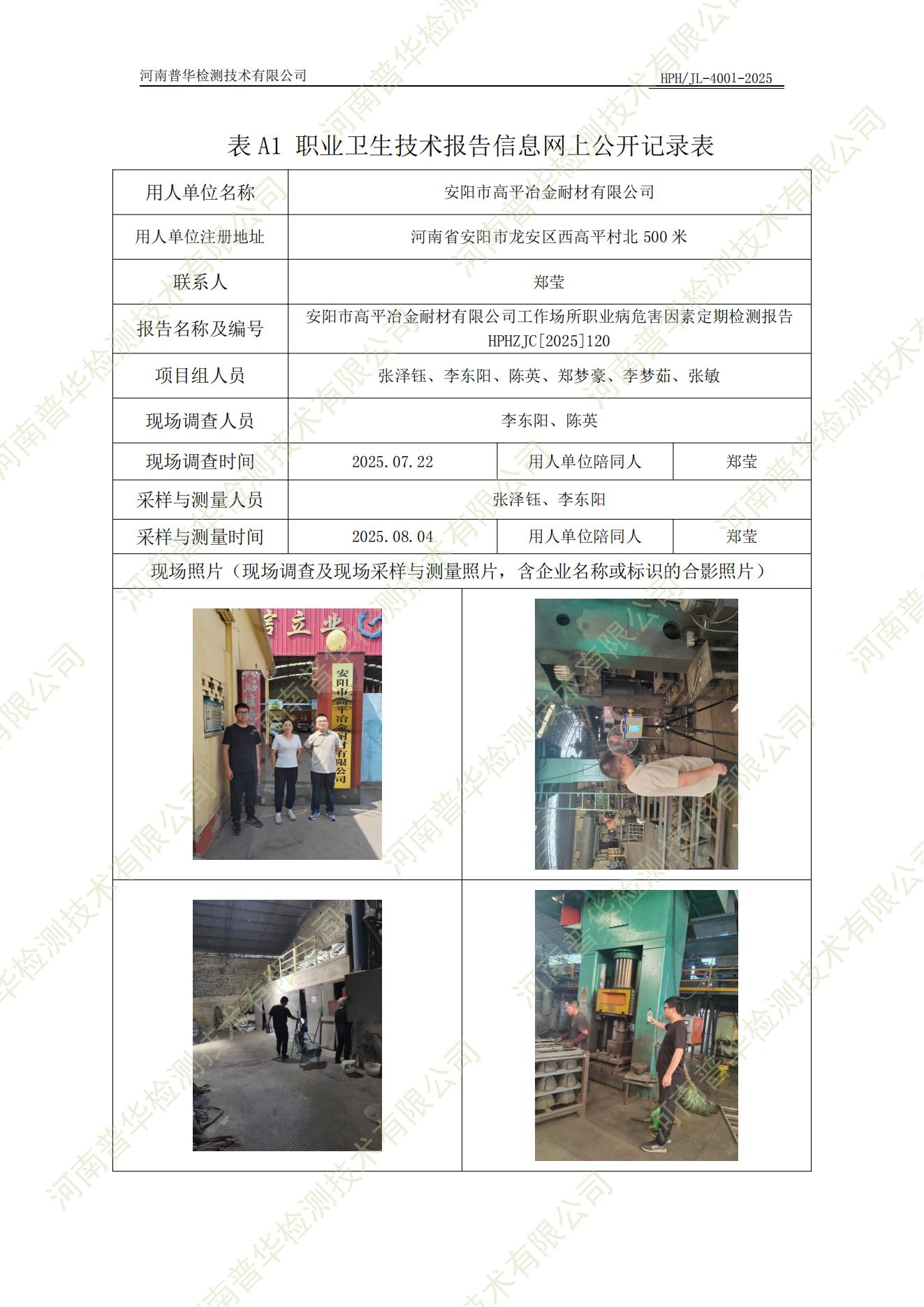 安陽市高平冶金耐材有限公司工作場所職業(yè)病危害因素定期檢測 點擊次數(shù):36 次