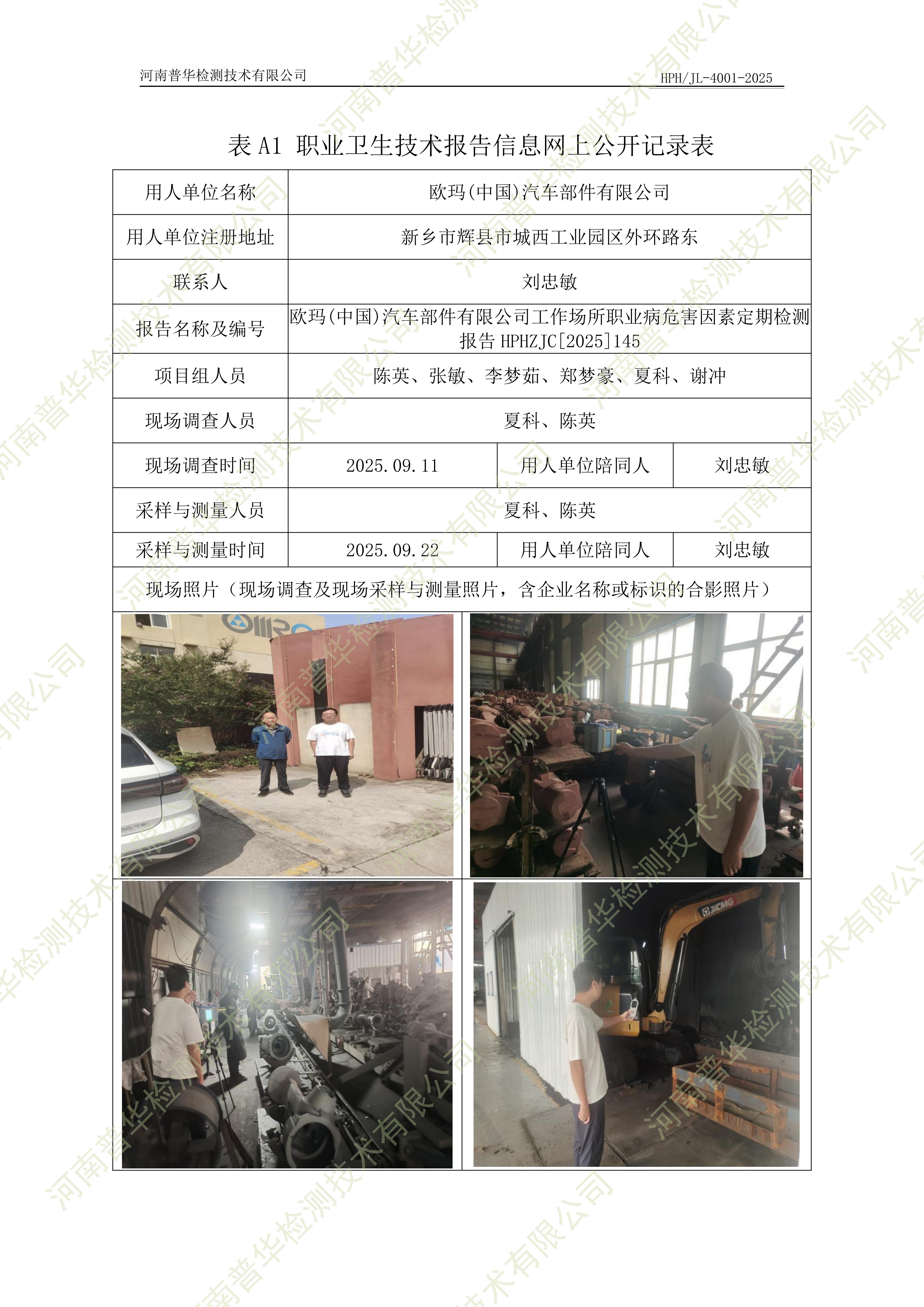 歐瑪(中國)汽車部件有限公司工作場所職業(yè)病危害因素定期檢測 點(diǎn)擊次數(shù):10 次