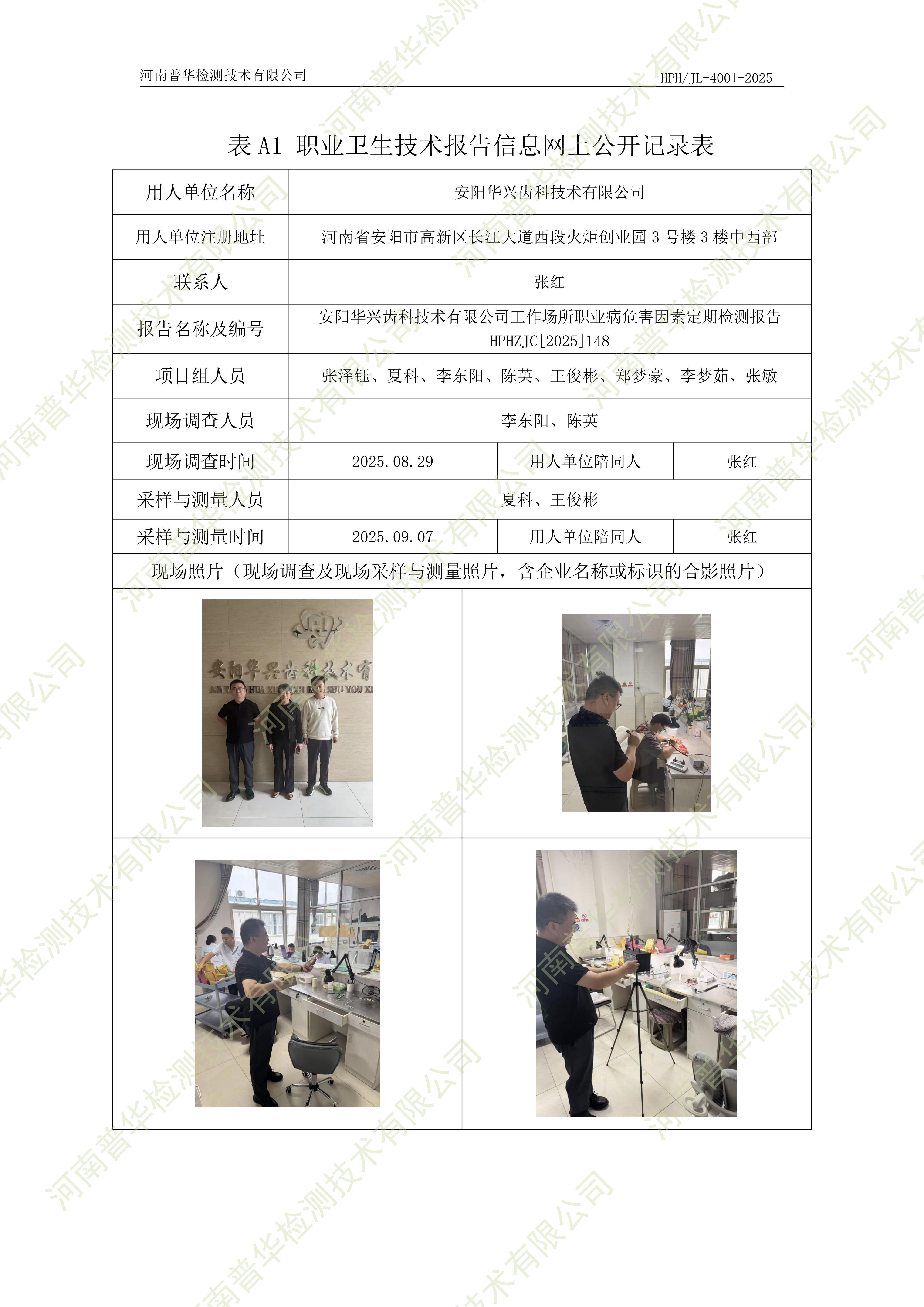 安陽華興齒科技術(shù)有限公司工作場所職業(yè)病危害因素定期檢測 點擊次數(shù):8 次