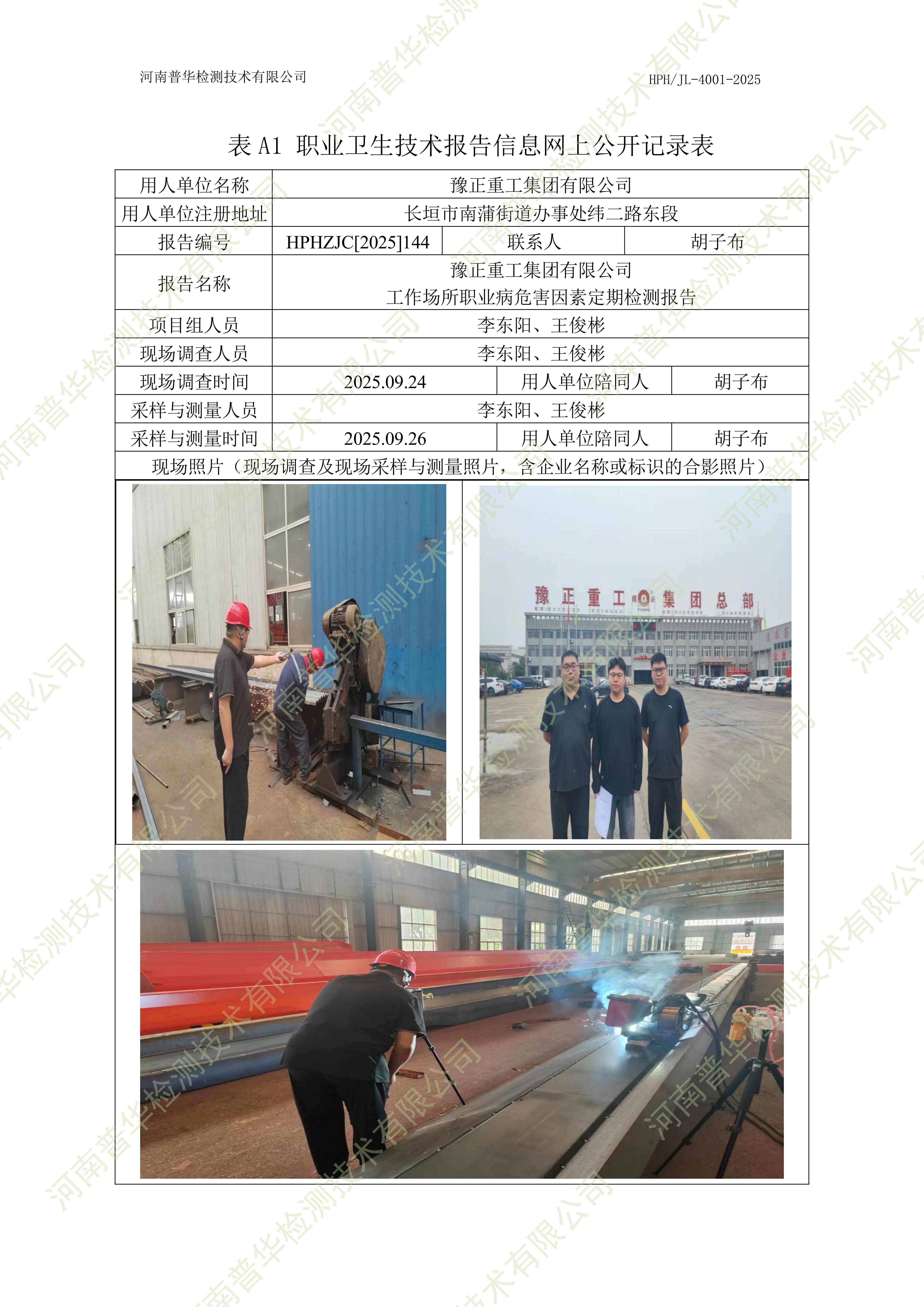 豫正重工集團(tuán)有限公司 工作場(chǎng)所職業(yè)病危害因素定期檢測(cè) 點(diǎn)擊次數(shù):12 次