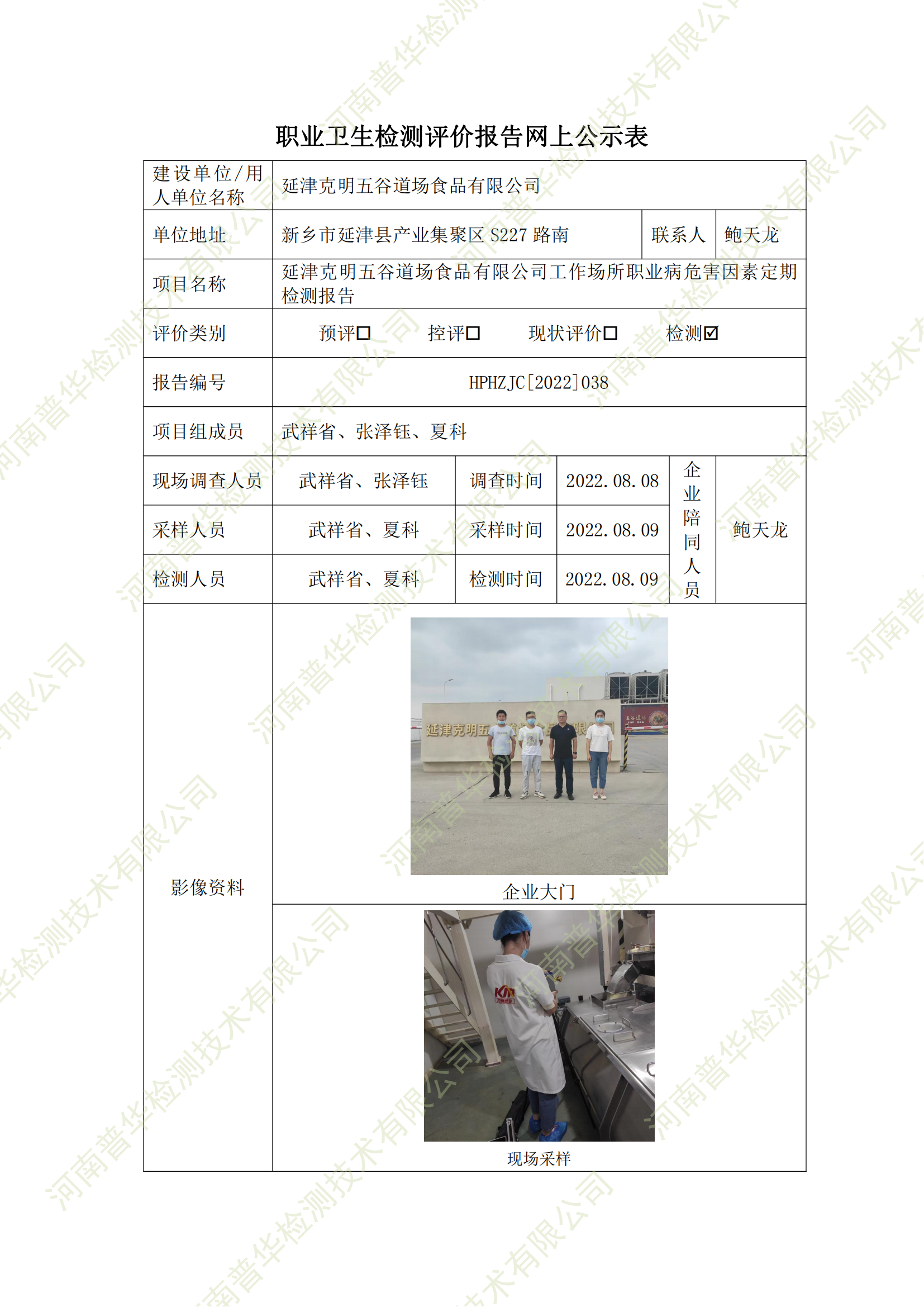 延津克明五谷道場(chǎng)食品有限公司工作場(chǎng)所職業(yè)病危害因素定期檢測(cè) 點(diǎn)擊次數(shù):1027 次