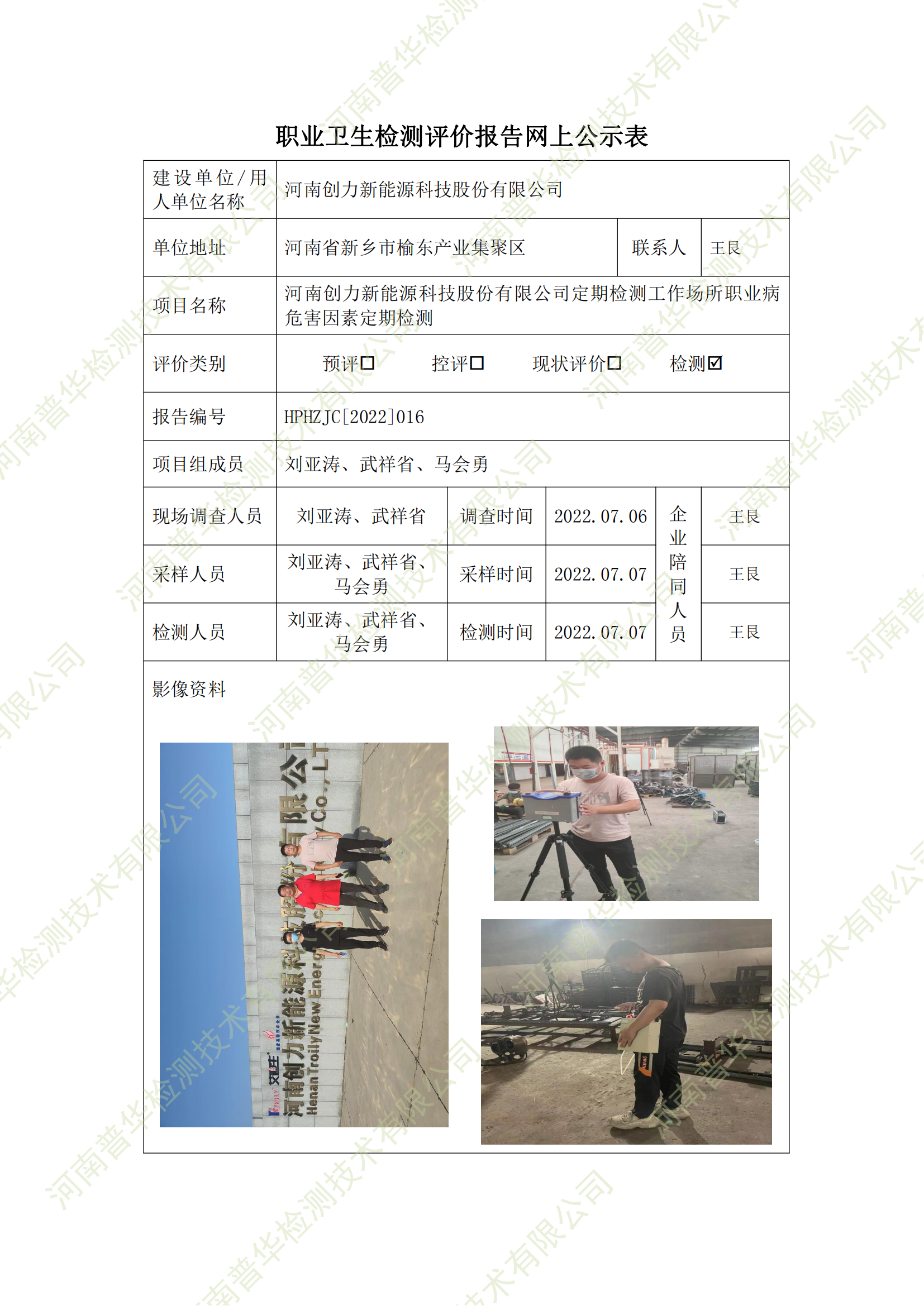河南創(chuàng)力新能源科技股份有限公司定期檢測工作場所職業(yè)病危害因素定期檢測 點擊次數(shù):1116 次