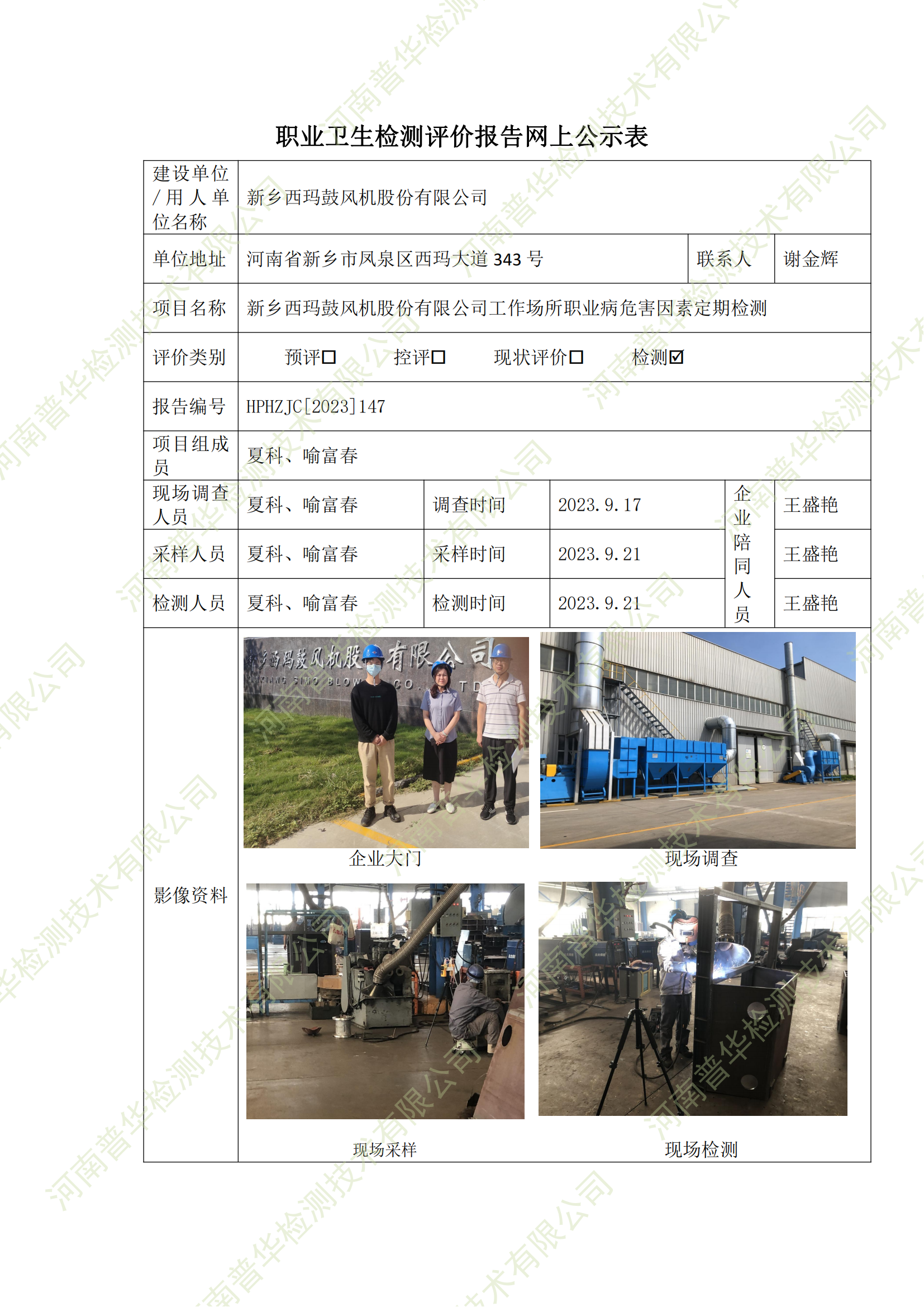 新鄉(xiāng)西瑪鼓風(fēng)機(jī)股份有限公司工作場(chǎng)所職業(yè)病危害因素定期檢測(cè) 點(diǎn)擊次數(shù):899 次