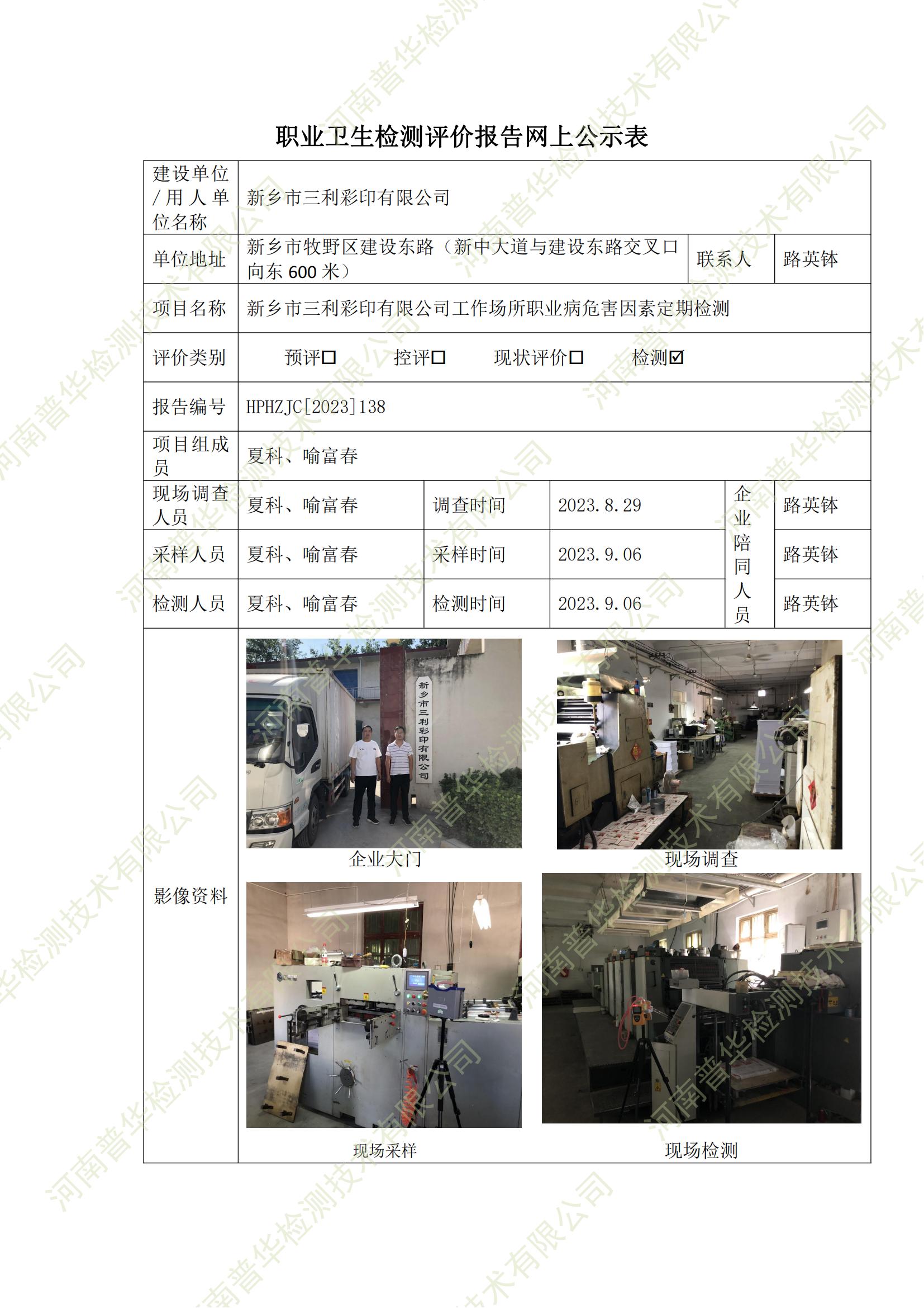 新鄉(xiāng)市三利彩印有限公司工作場所職業(yè)病危害因素定期檢測 點擊次數(shù):982 次