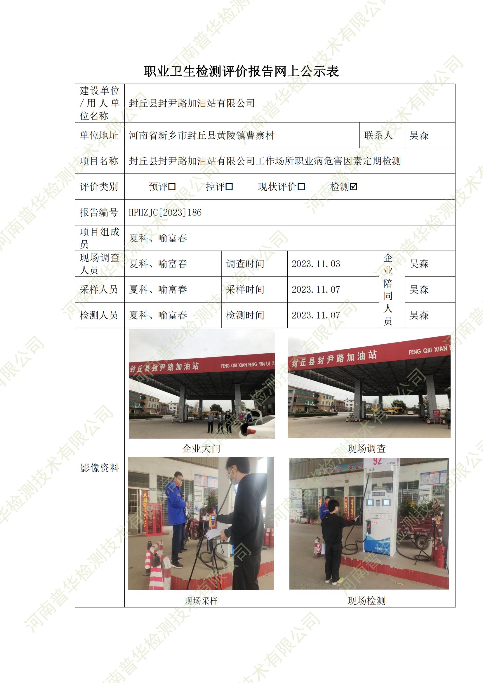 封丘縣封尹路加油站有限公司工作場(chǎng)所職業(yè)病危害因素定期檢測(cè) 點(diǎn)擊次數(shù):1122 次
