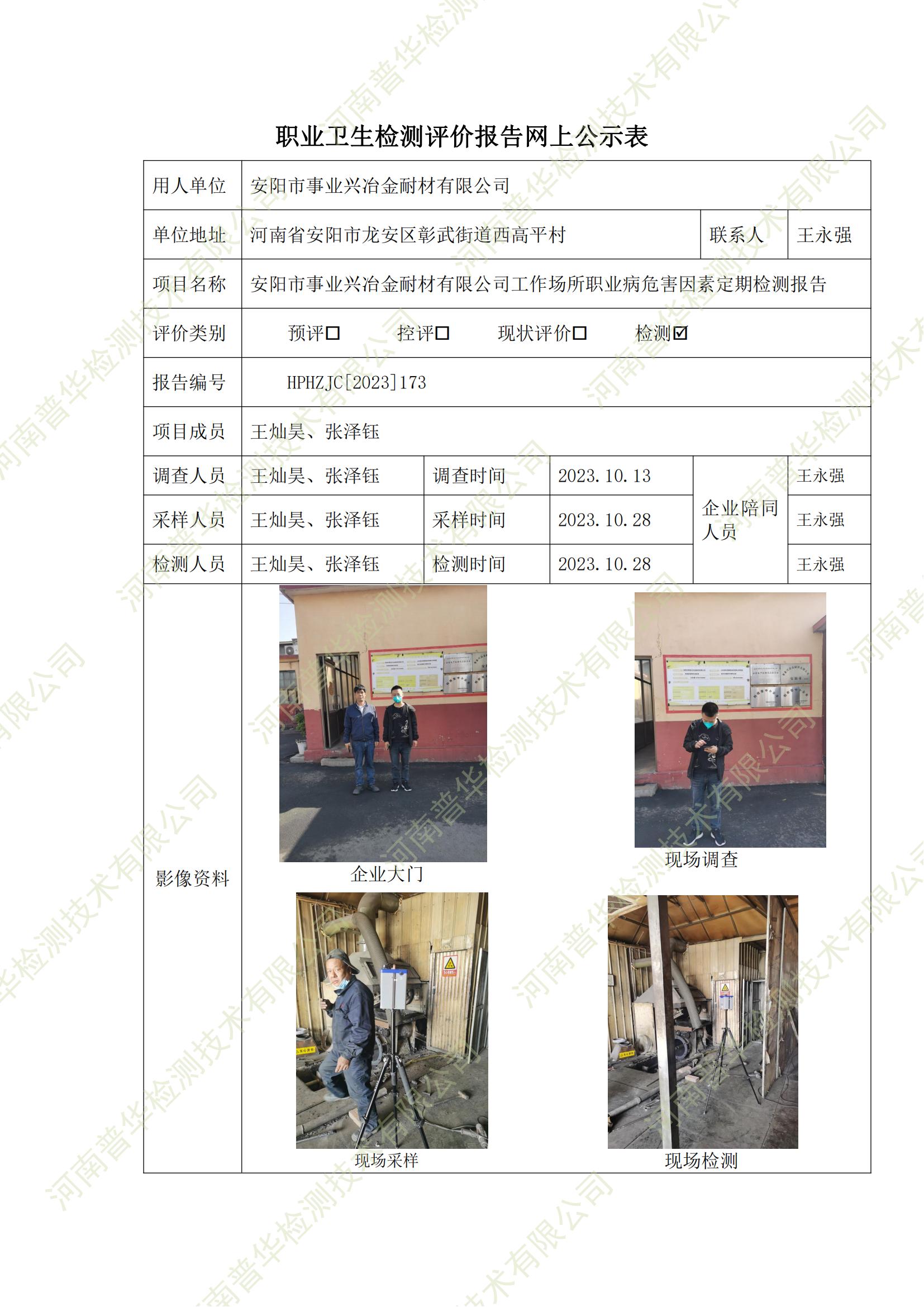 安陽市事業(yè)興冶金耐材有限公司工作場所職業(yè)病危害因素定期檢測(cè) 點(diǎn)擊次數(shù):1002 次