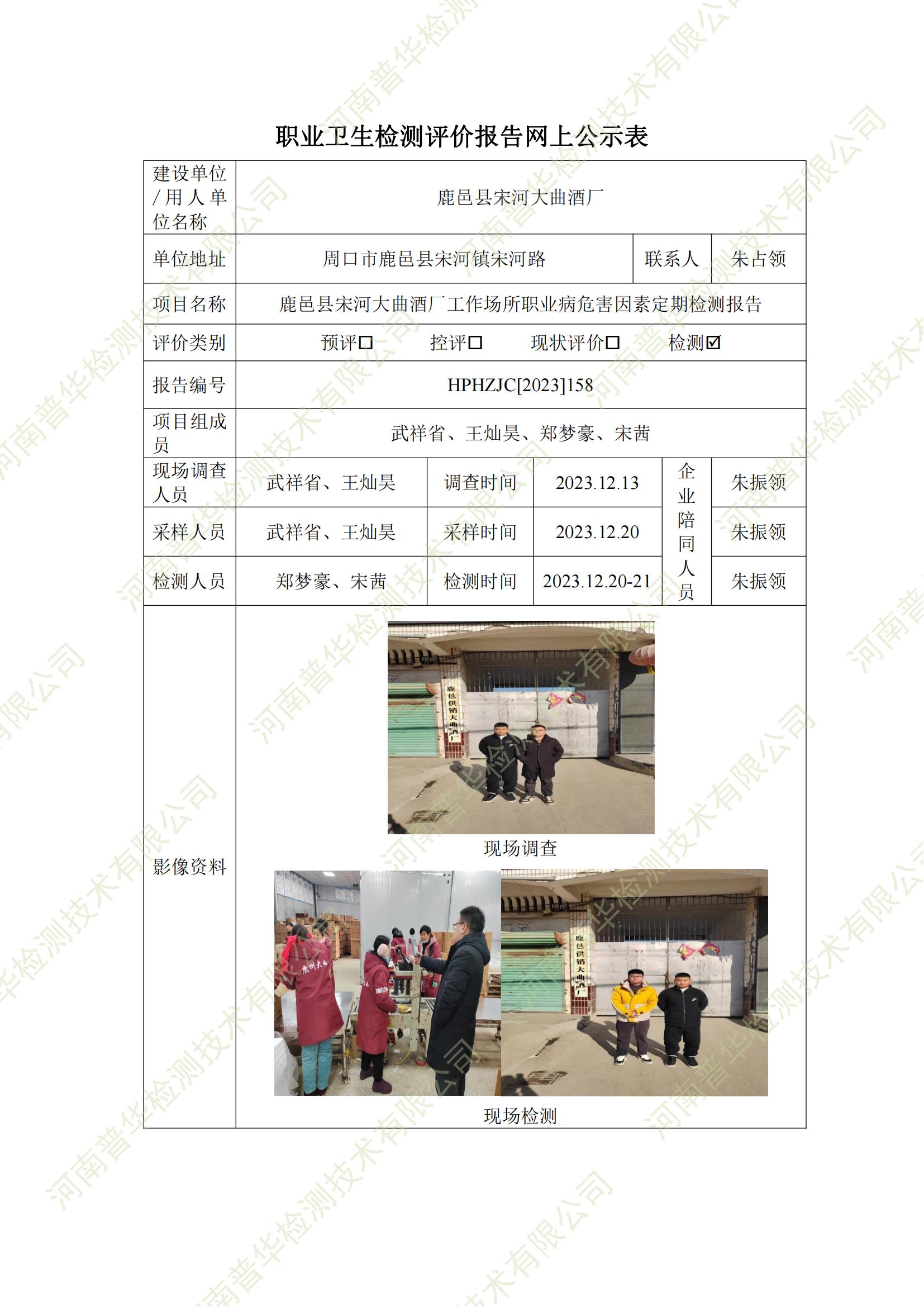 鹿邑縣宋河大曲酒廠(chǎng)工作場(chǎng)所職業(yè)病危害因素定期檢測(cè) 點(diǎn)擊次數(shù):1115 次