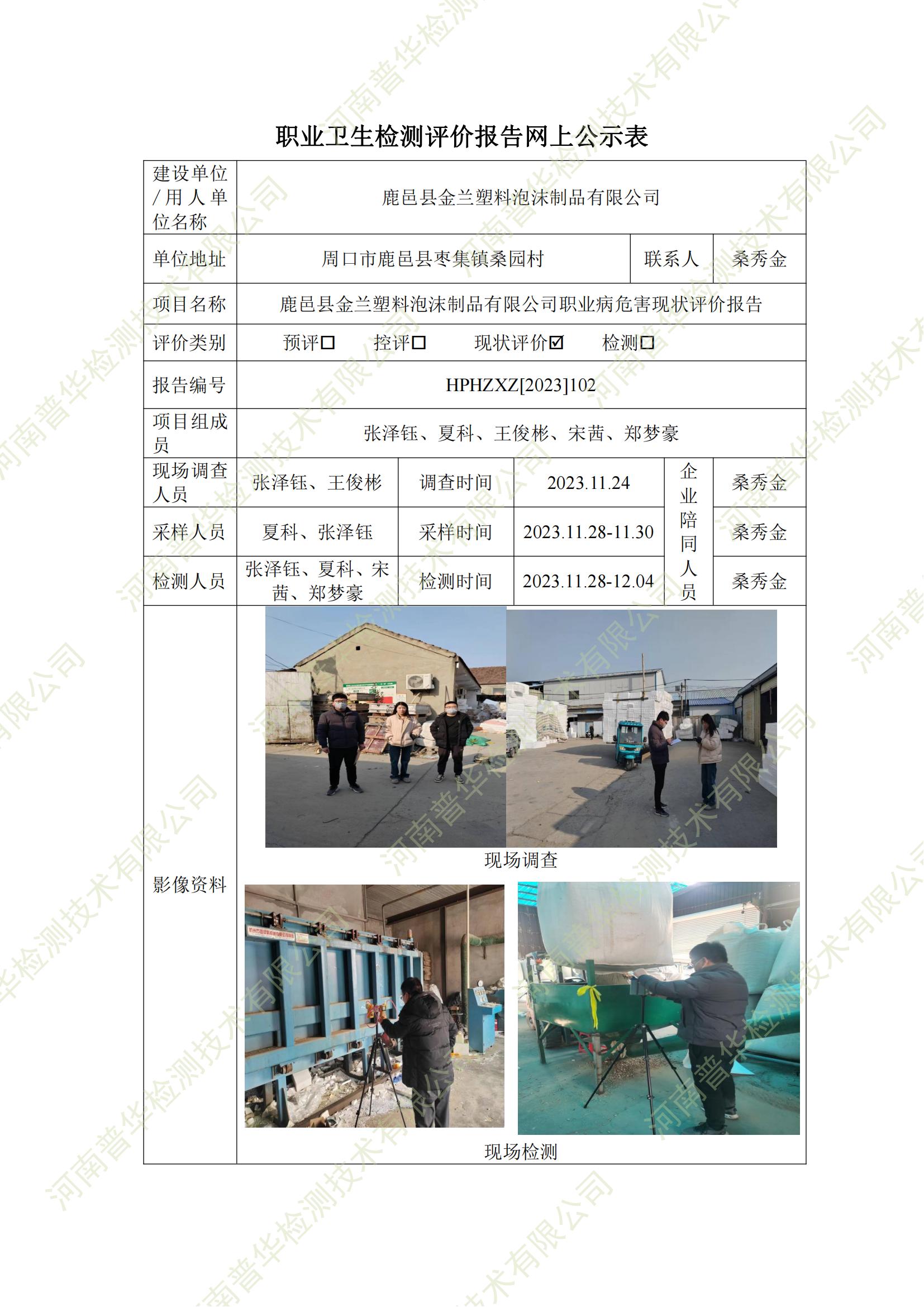 鹿邑縣金蘭塑料泡沫制品有限公司職業(yè)病危害現(xiàn)狀評(píng)價(jià) 點(diǎn)擊次數(shù):977 次
