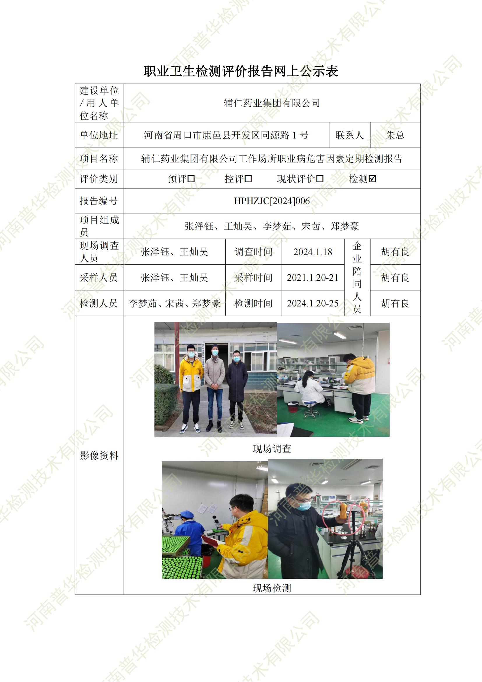 輔仁藥業(yè)集團(tuán)有限公司工作場(chǎng)所職業(yè)病危害因素定期檢測(cè) 點(diǎn)擊次數(shù):898 次