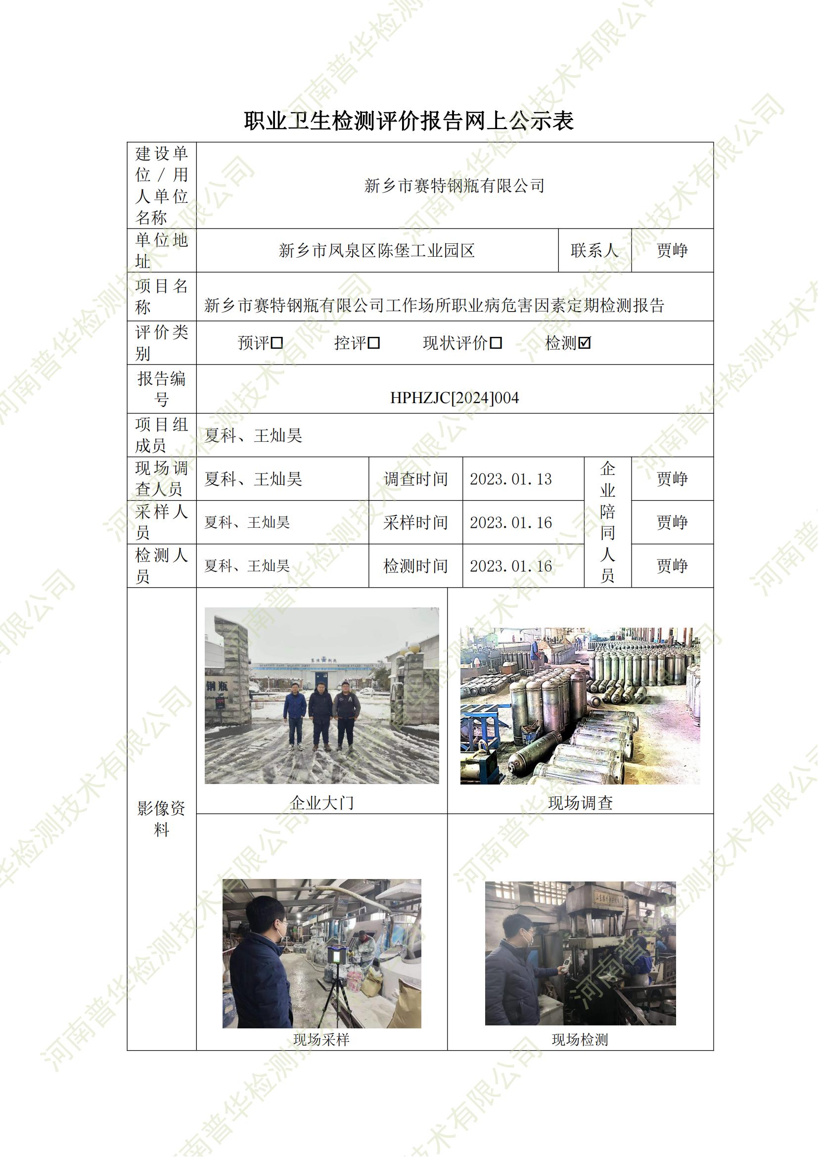 新鄉(xiāng)市賽特鋼瓶有限公司工作場(chǎng)所職業(yè)病危害因素定期檢測(cè) 點(diǎn)擊次數(shù):927 次