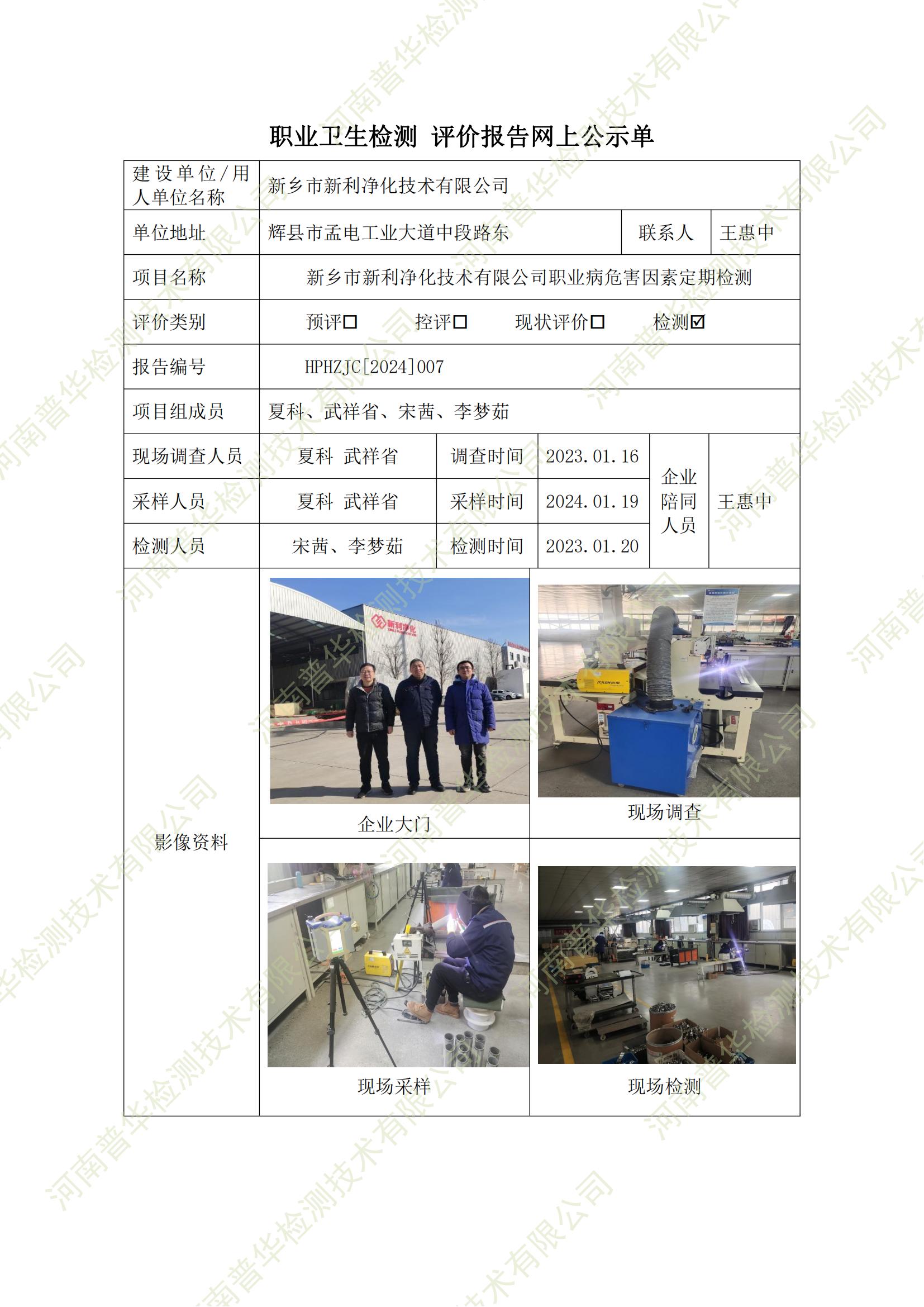 新鄉(xiāng)市新利凈化技術(shù)有限公司職業(yè)病危害因素定期檢測 點(diǎn)擊次數(shù):904 次