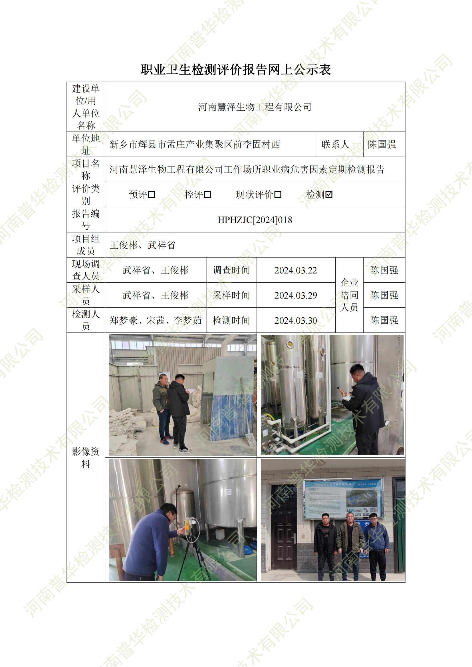 河南慧澤生物工程有限公司工作場所職業(yè)病危害因素定期檢測 點擊次數(shù):911 次