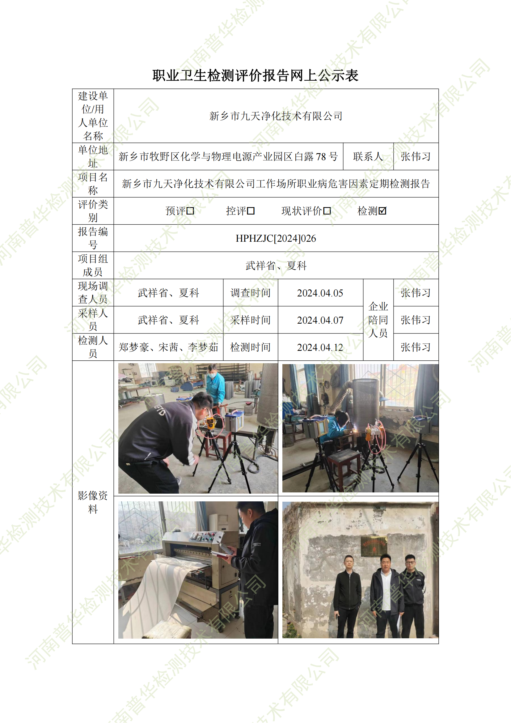 新鄉(xiāng)市九天凈化技術(shù)有限公司工作場(chǎng)所職業(yè)病危害因素定期檢測(cè) 點(diǎn)擊次數(shù):855 次