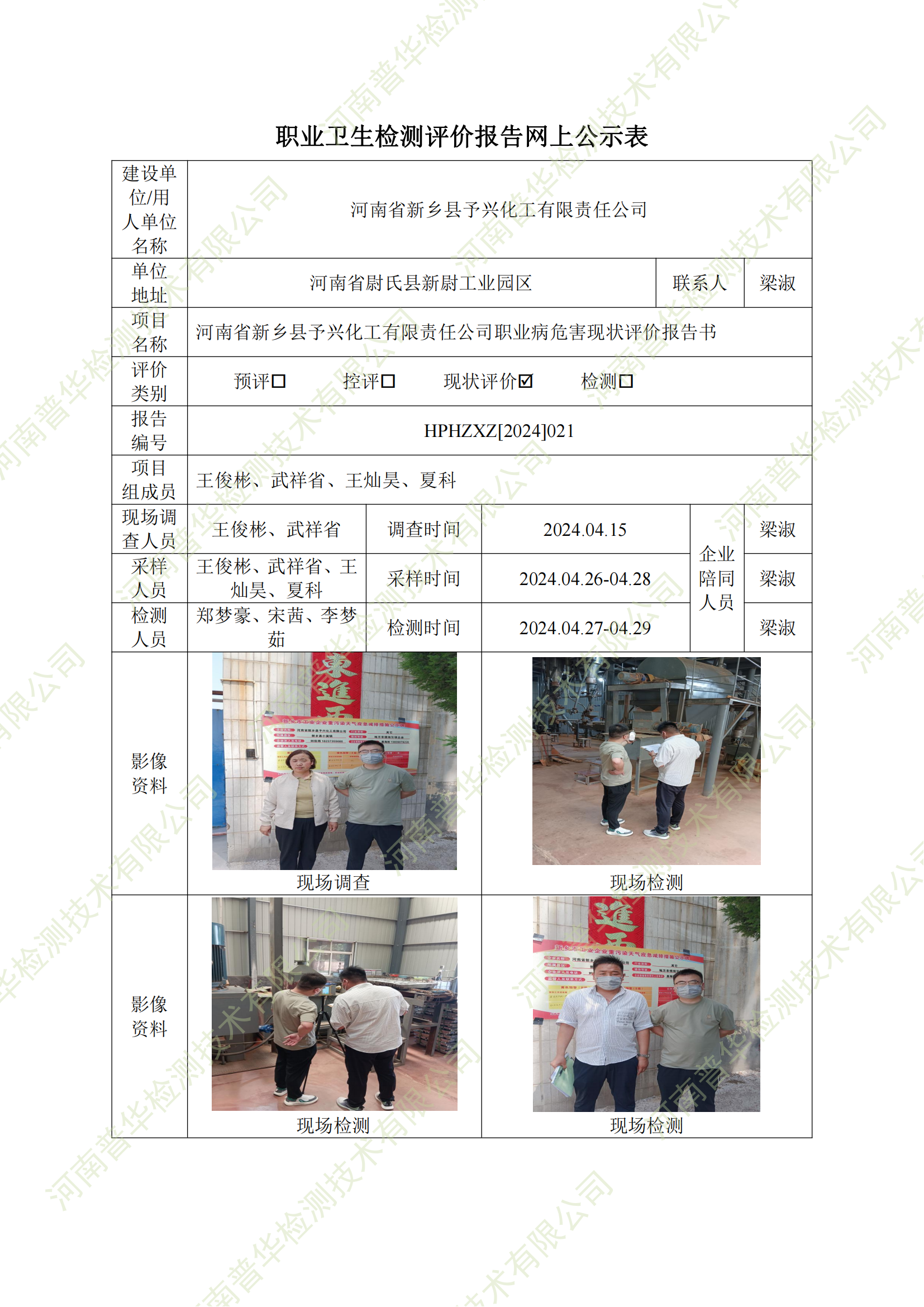 河南省新鄉(xiāng)縣予興化工有限責任公司職業(yè)病危害現(xiàn)狀評價 點擊次數(shù):944 次