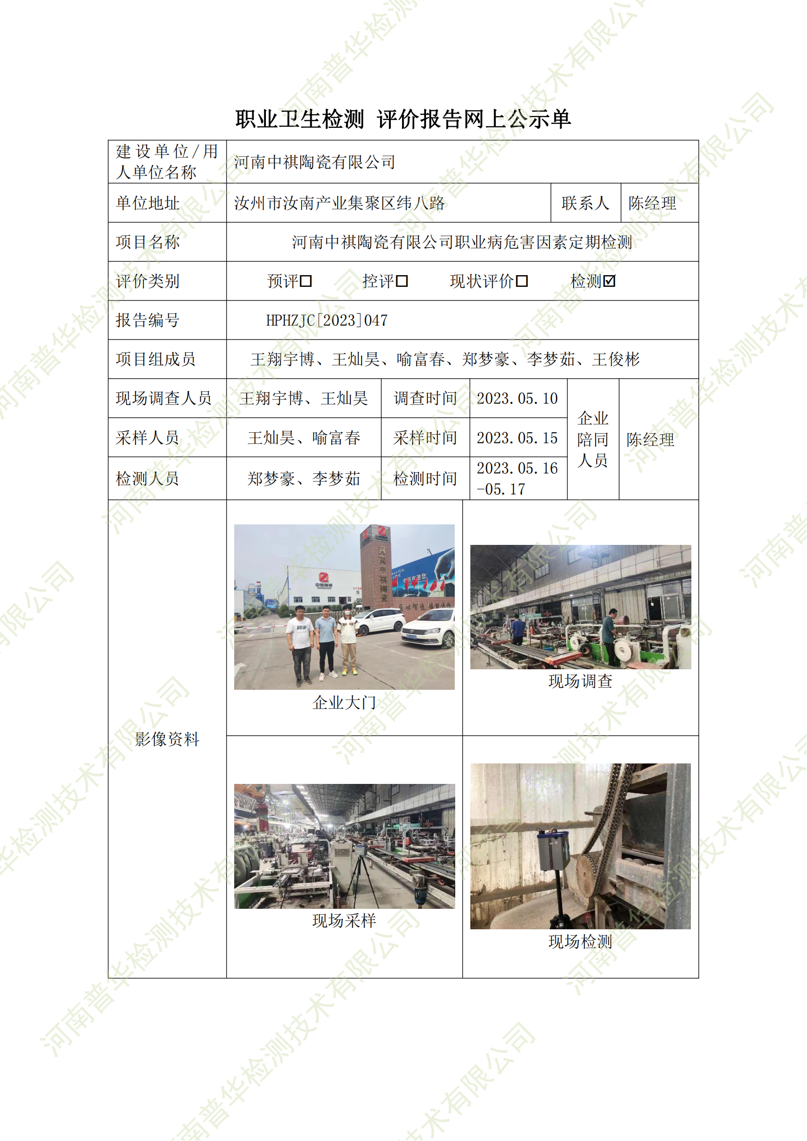 河南中祺陶瓷有限公司職業(yè)病危害因素定期檢測 點擊次數(shù):861 次