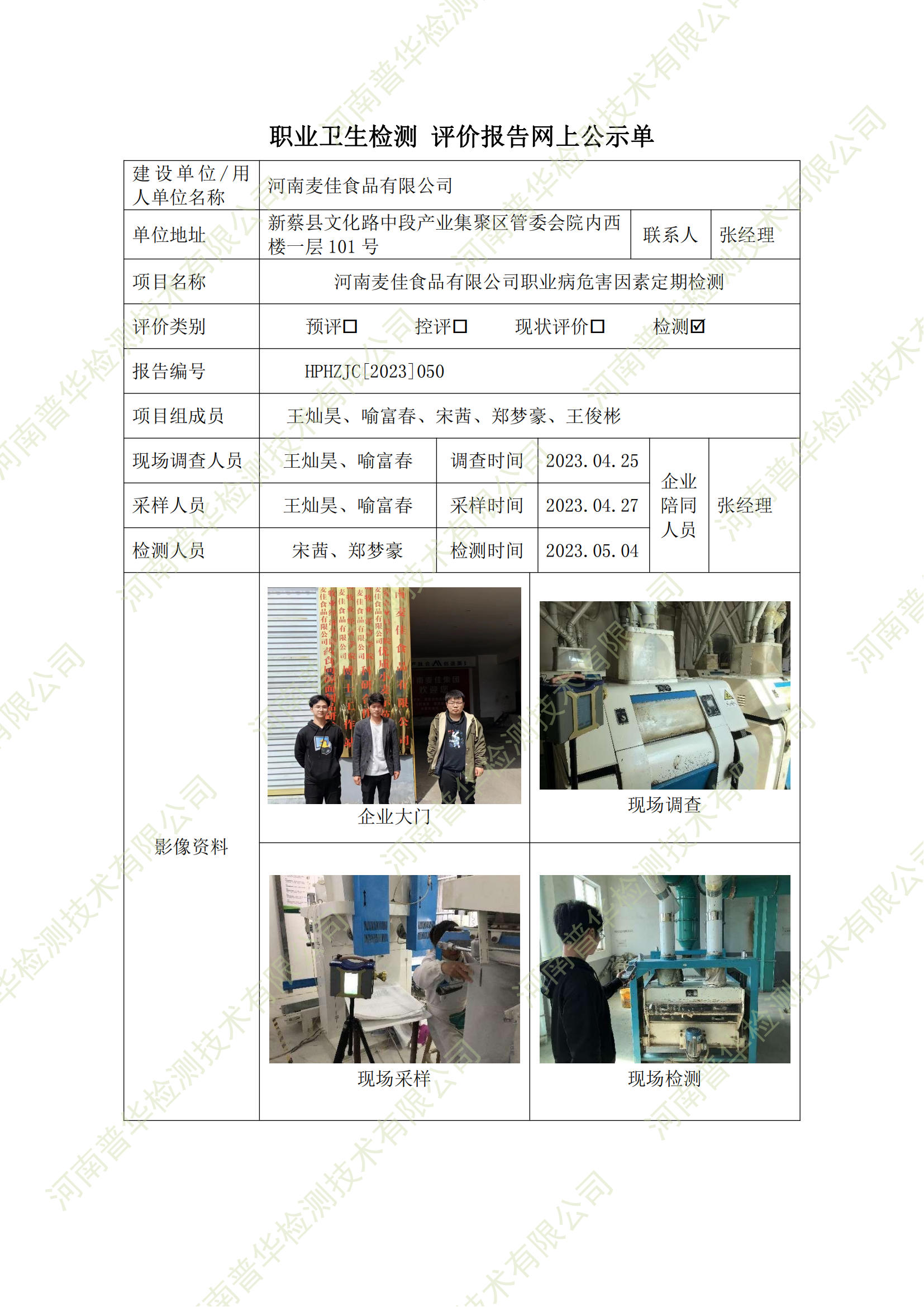 河南麥佳食品有限公司職業(yè)病危害因素定期檢測 點(diǎn)擊次數(shù):851 次