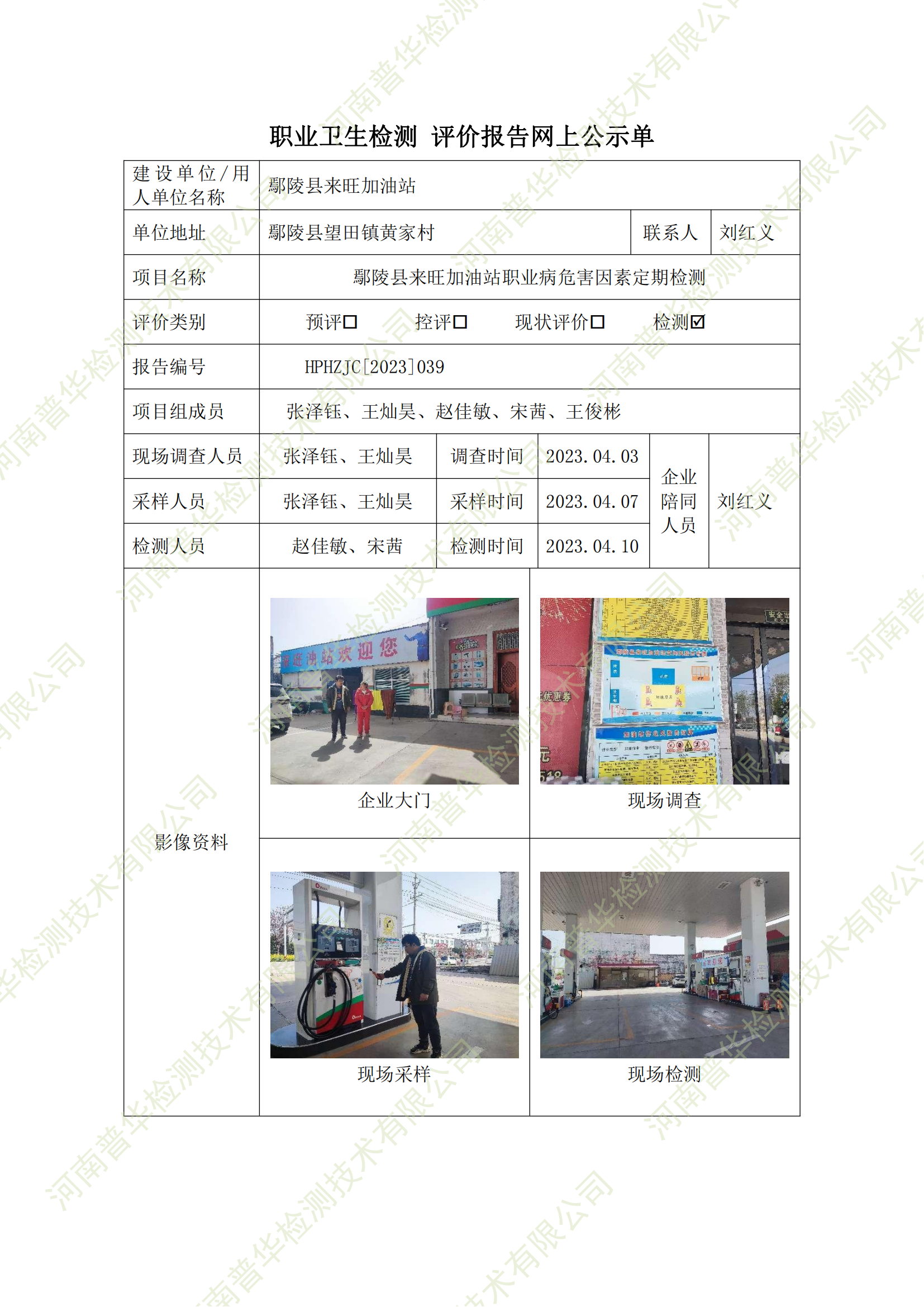 鄢陵縣來旺加油站職業(yè)病危害因素定期檢測 點擊次數(shù):889 次