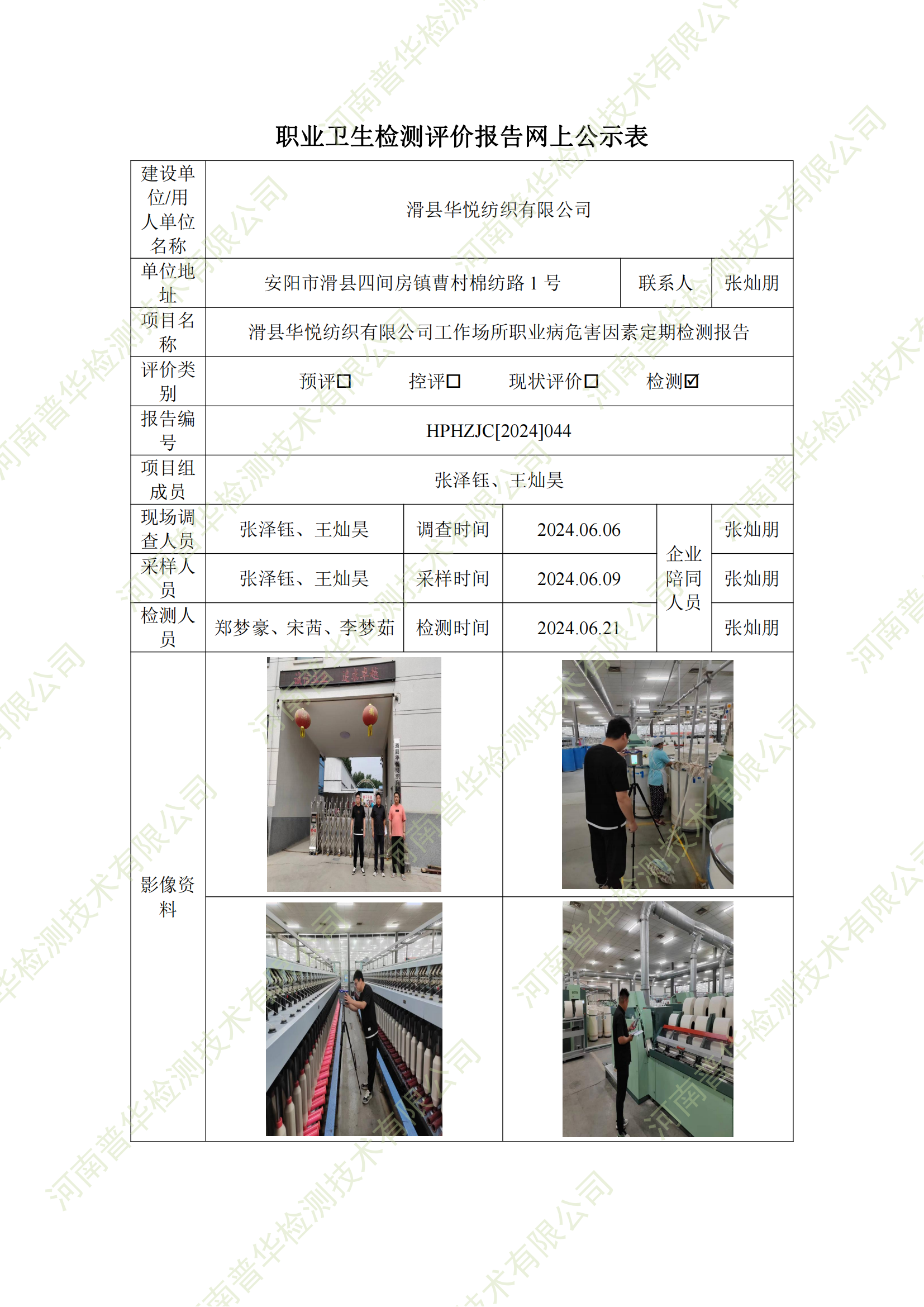 滑縣華悅紡織有限公司工作場所職業(yè)病危害因素定期檢測 點擊次數(shù):878 次