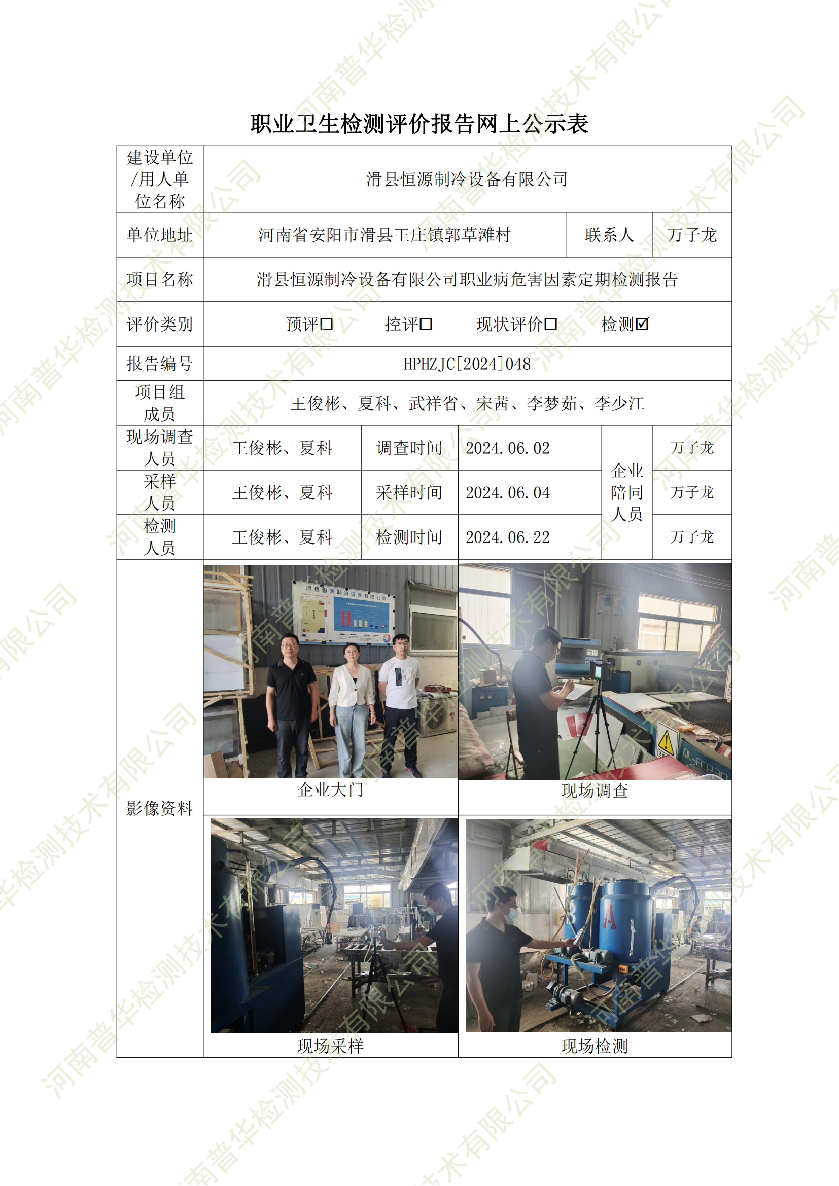滑縣恒源制冷設(shè)備有限公司職業(yè)病危害因素定期檢測(cè) 點(diǎn)擊次數(shù):876 次