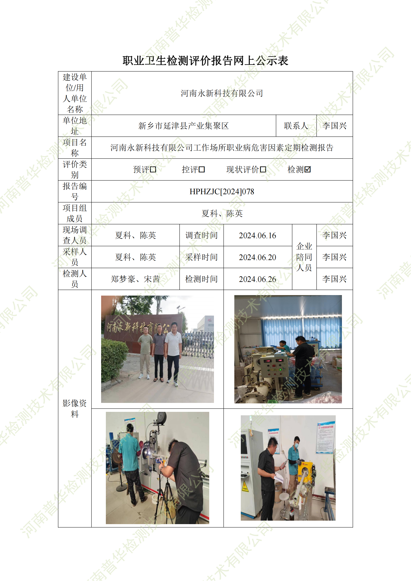 河南永新科技有限公司工作場所職業(yè)病危害因素定期檢測 點擊次數(shù):996 次