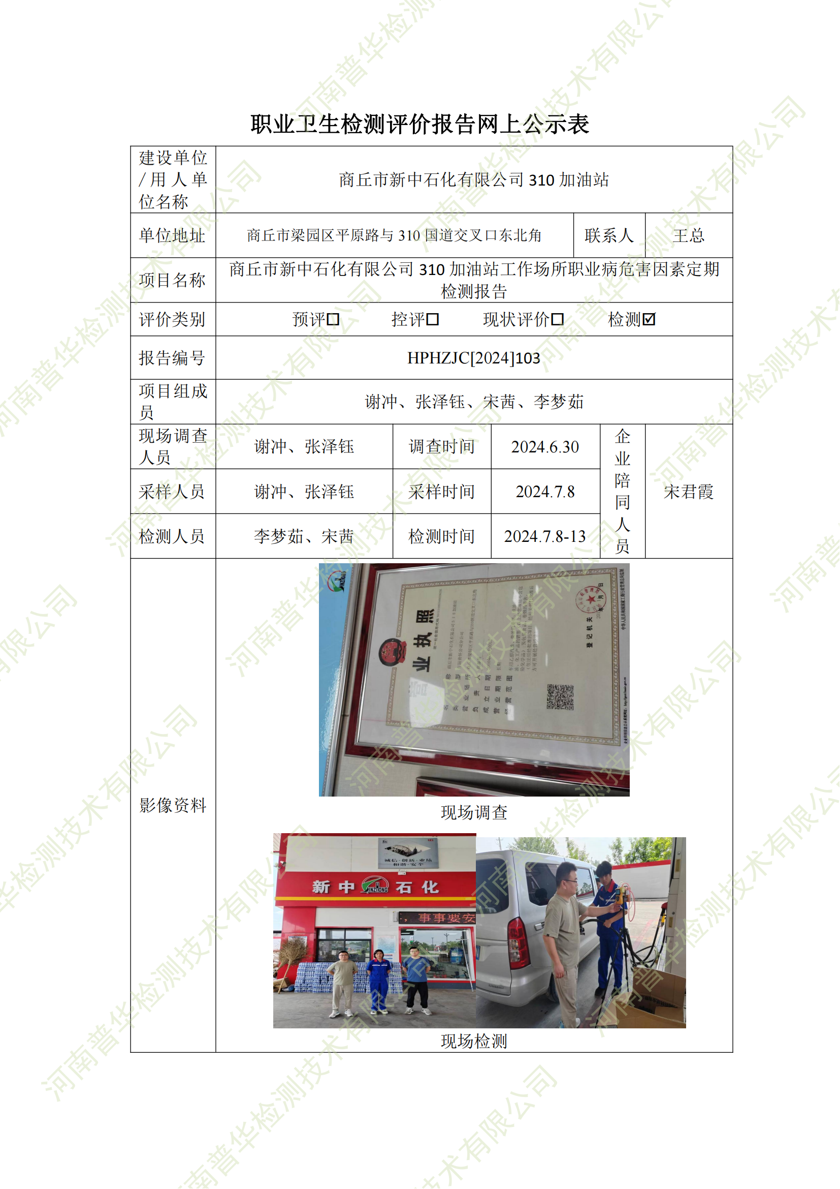 商丘市新中石化有限公司310加油站工作場(chǎng)所職業(yè)病危害因素定期檢測(cè) 點(diǎn)擊次數(shù):958 次