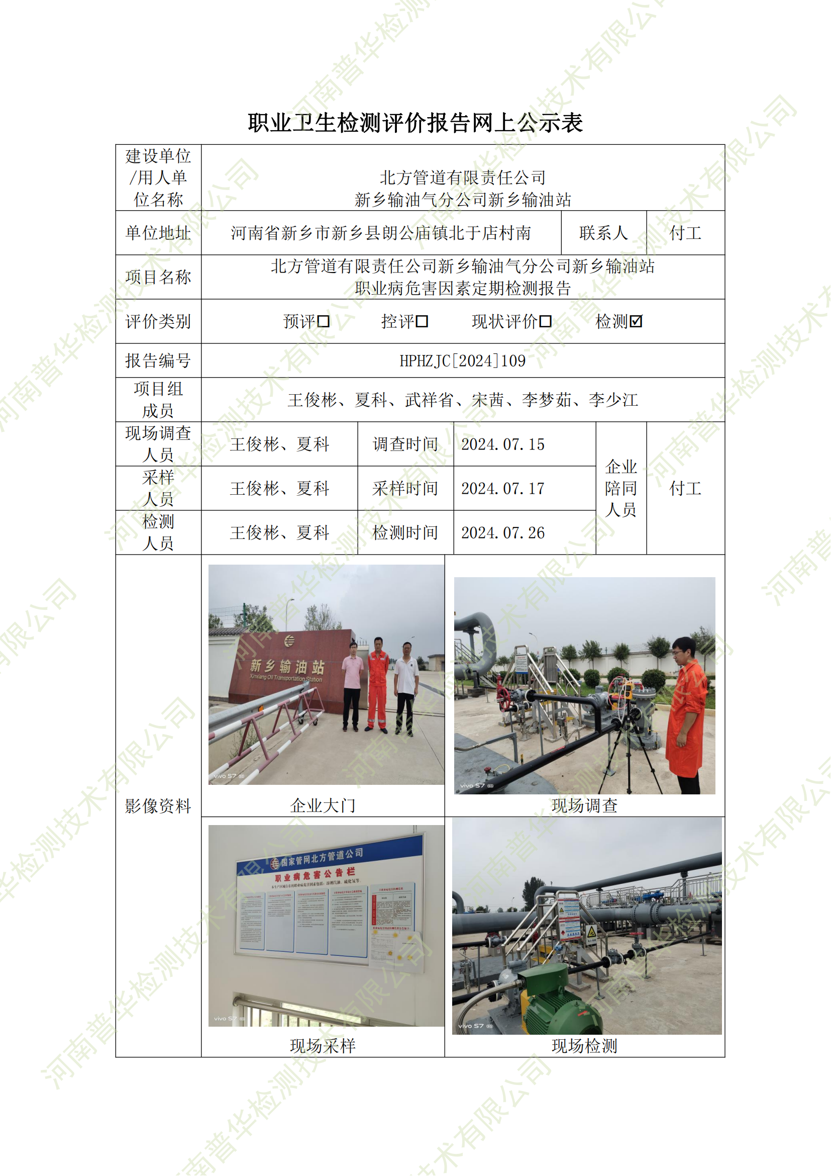 北方管道有限責(zé)任公司新鄉(xiāng)輸油氣分公司新鄉(xiāng)輸油站 職業(yè)病危害因素定期檢測(cè) 點(diǎn)擊次數(shù):979 次
