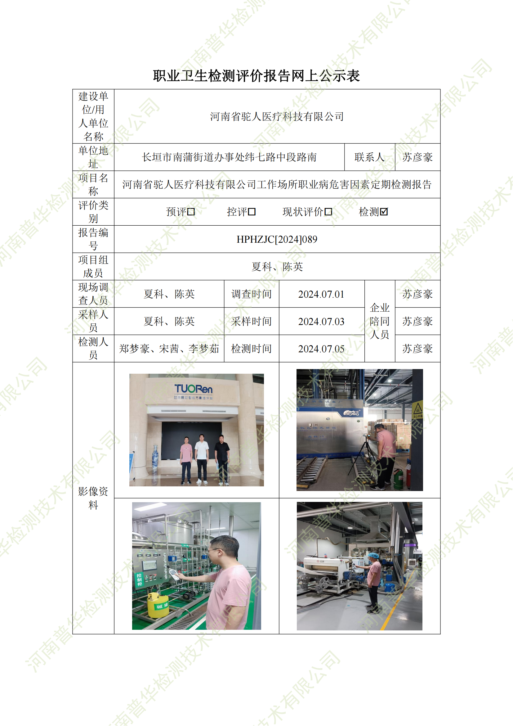 河南省駝人醫(yī)療科技有限公司工作場(chǎng)所職業(yè)病危害因素定期檢測(cè) 點(diǎn)擊次數(shù):925 次