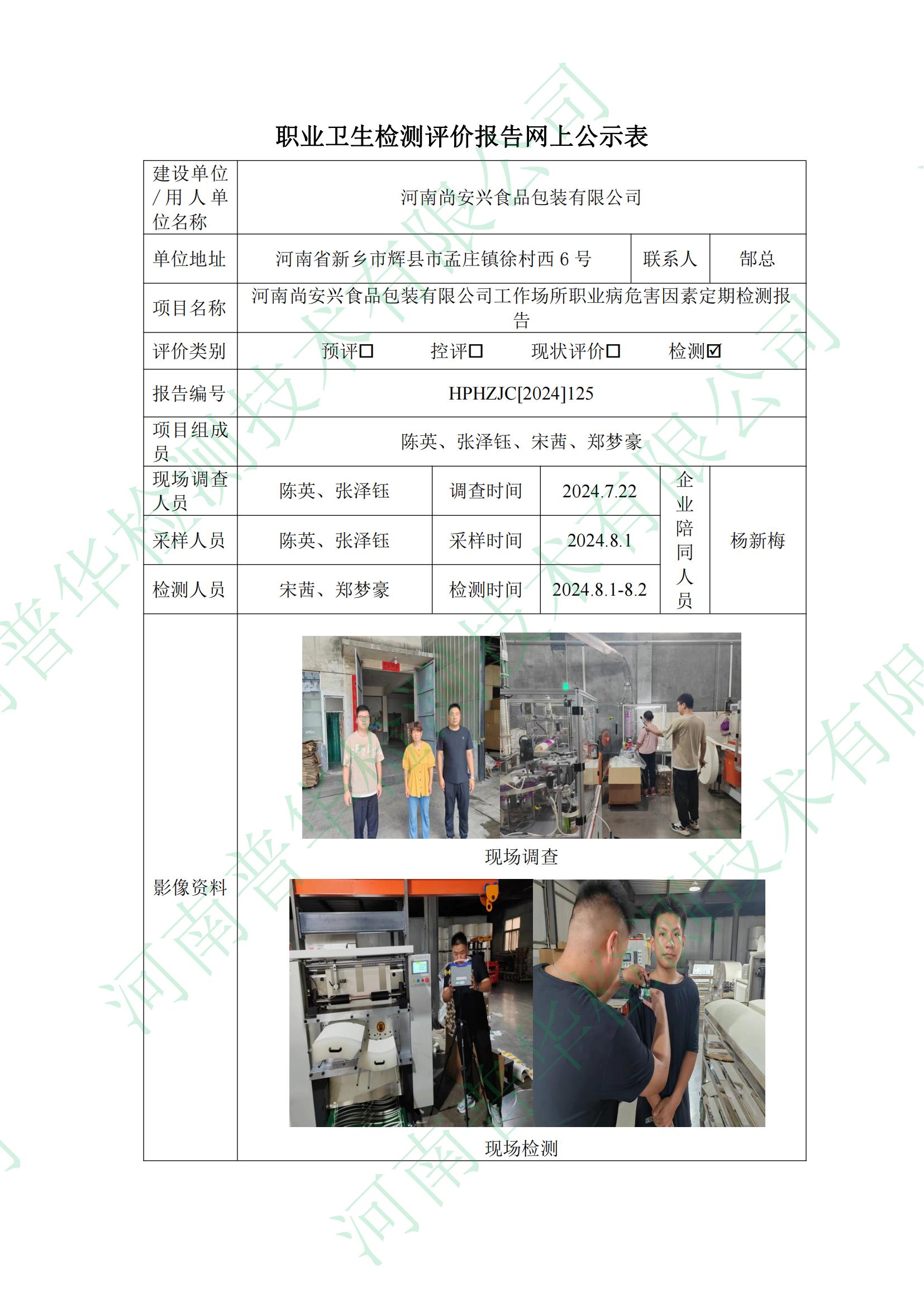 河南尚安興食品包裝有限公司工作場所職業(yè)病危害因素定期檢測 點擊次數(shù):966 次