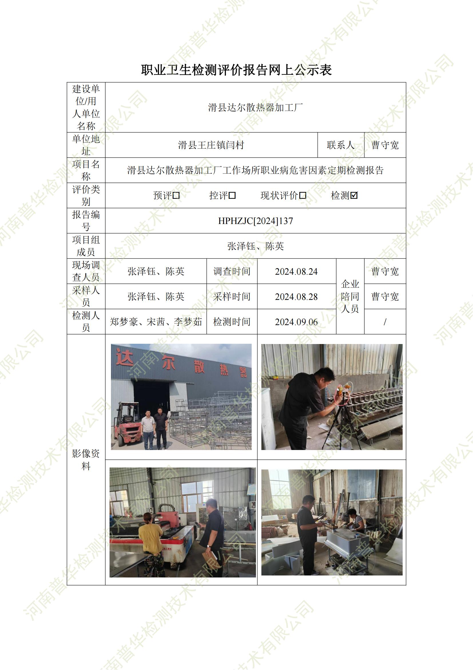 滑縣達(dá)爾散熱器加工廠工作場(chǎng)所職業(yè)病危害因素定期檢 點(diǎn)擊次數(shù):878 次