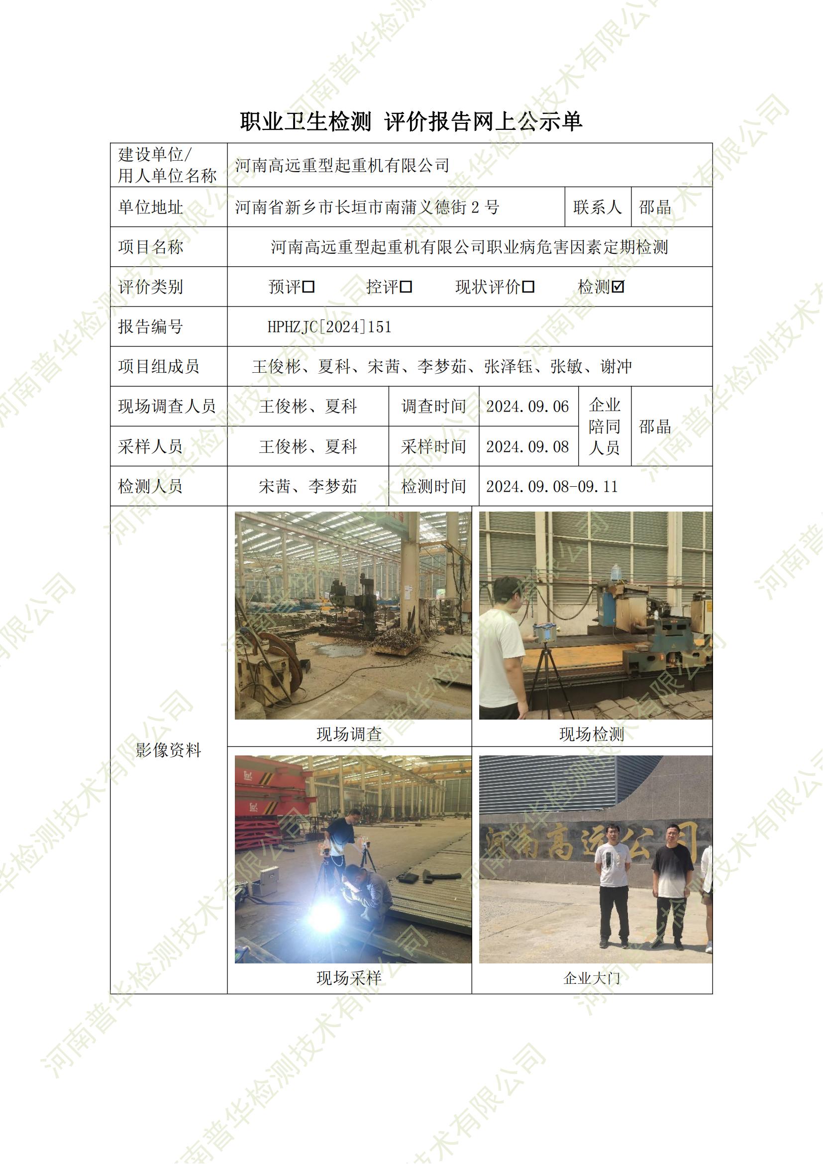 河南高遠重型起重機有限公司職業(yè)病危害因素定期檢測 點擊次數(shù):898 次
