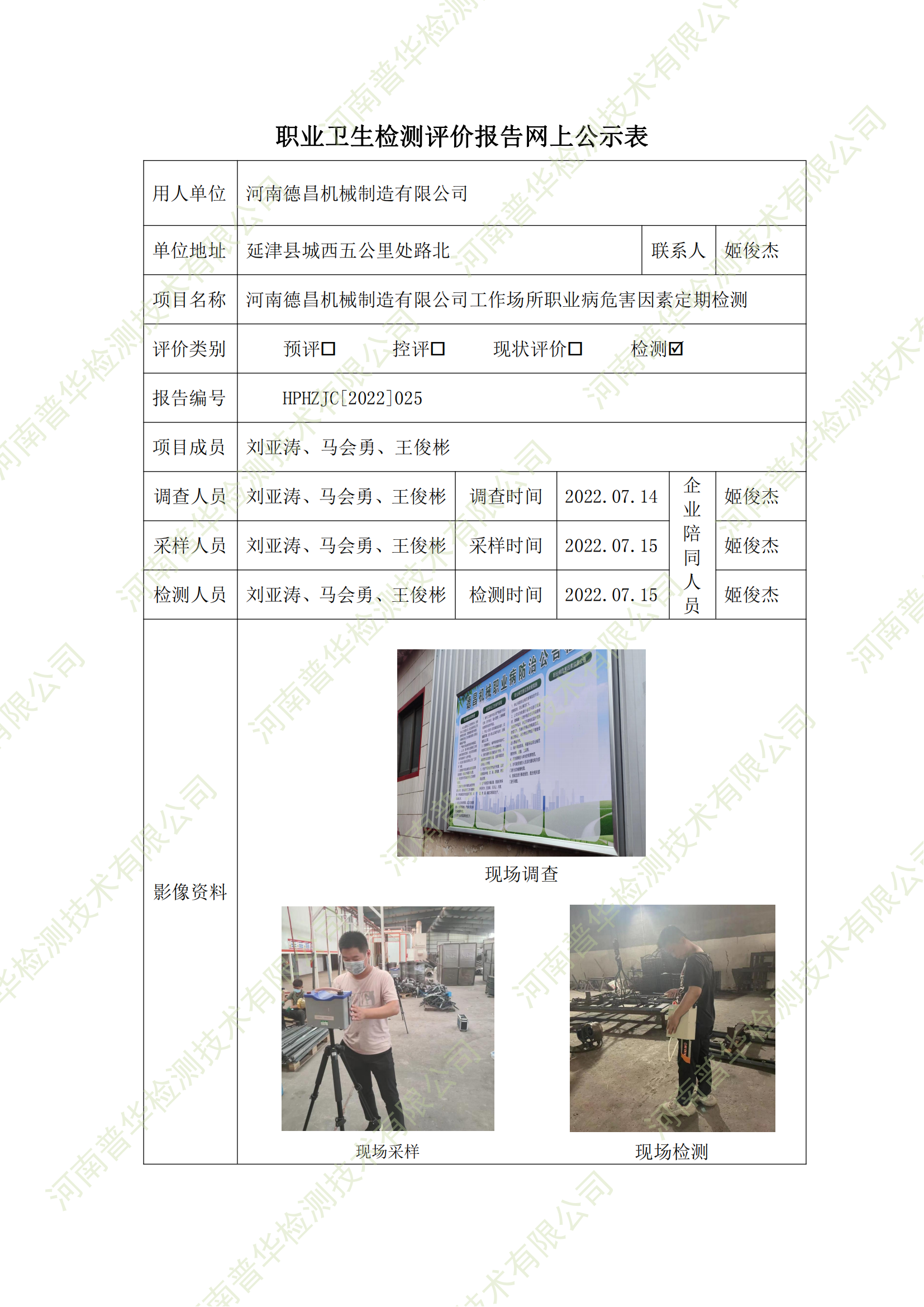 河南德昌機(jī)械制造有限公司工作場所職業(yè)病危害因素定期檢測 點(diǎn)擊次數(shù):1779 次