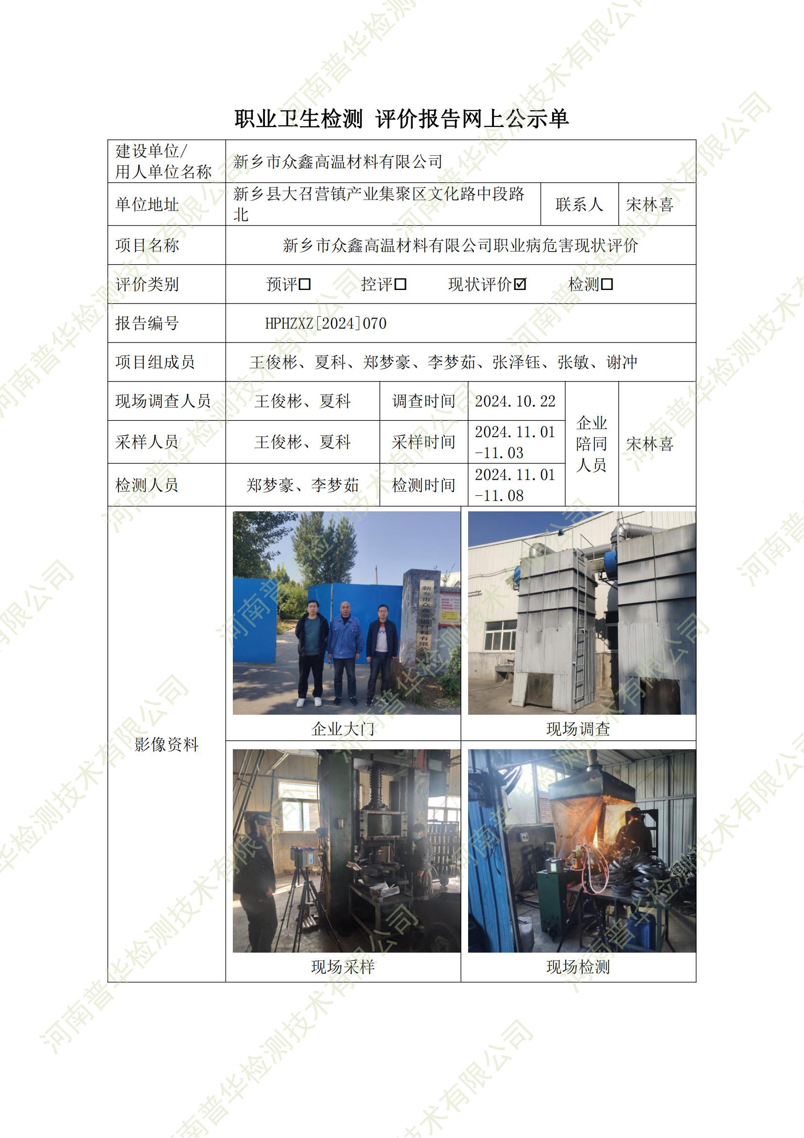 新鄉(xiāng)市眾鑫高溫材料有限公司職業(yè)病危害現(xiàn)狀評價 點擊次數(shù):708 次