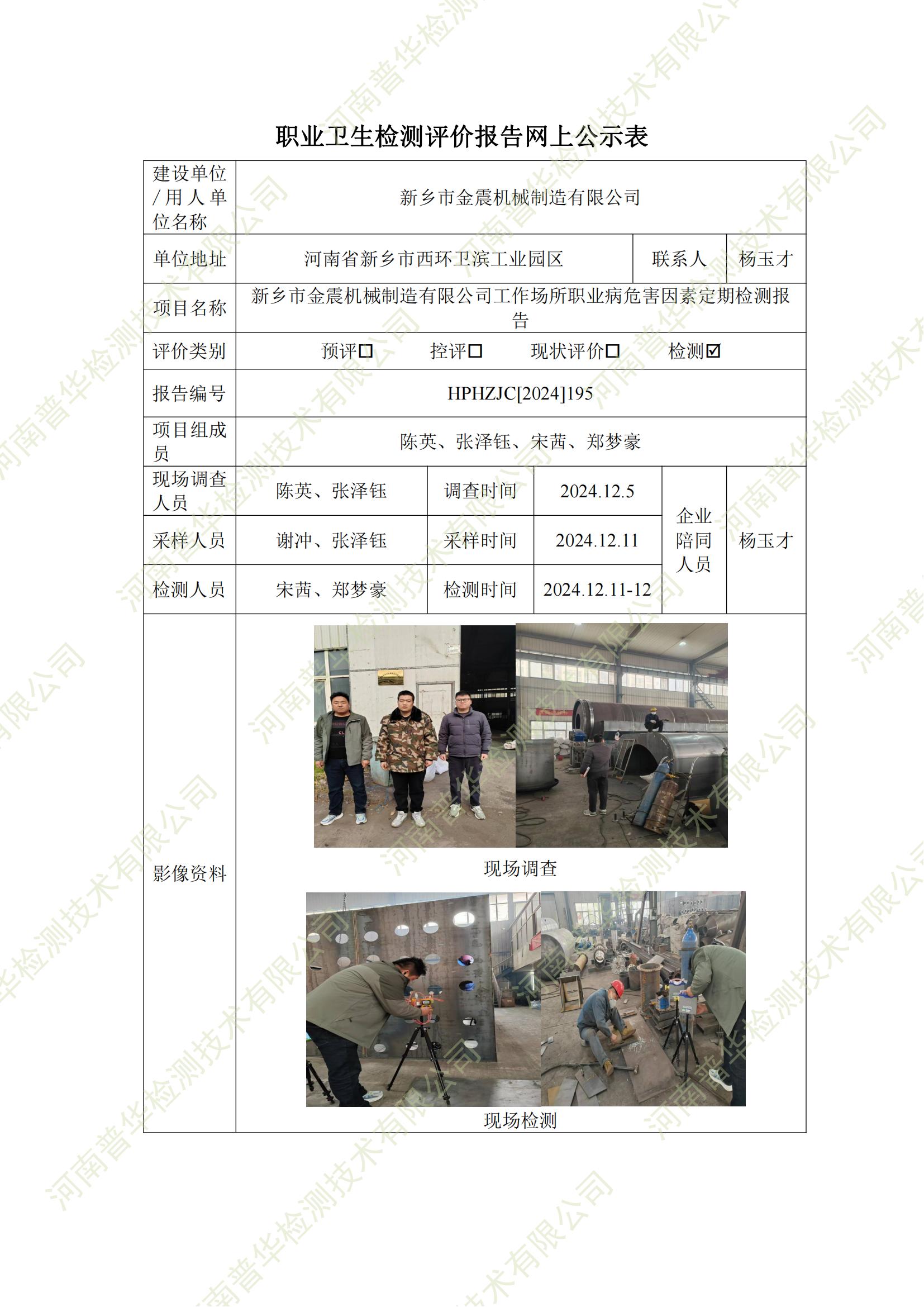新鄉(xiāng)市金震機械制造有限公司工作場所職業(yè)病危害因素定期檢測 點擊次數(shù):750 次
