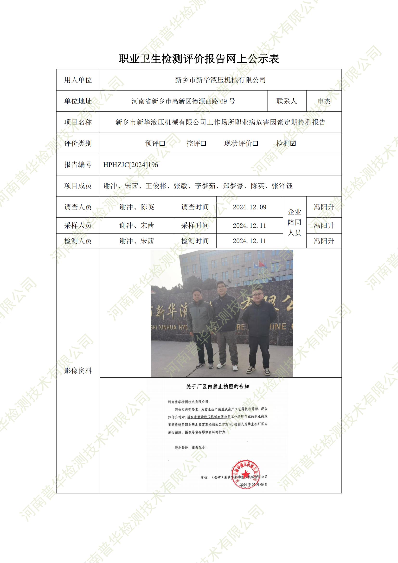 新鄉(xiāng)市新華液壓機械有限公司工作場所職業(yè)病危害因素定期檢測 點擊次數(shù):695 次