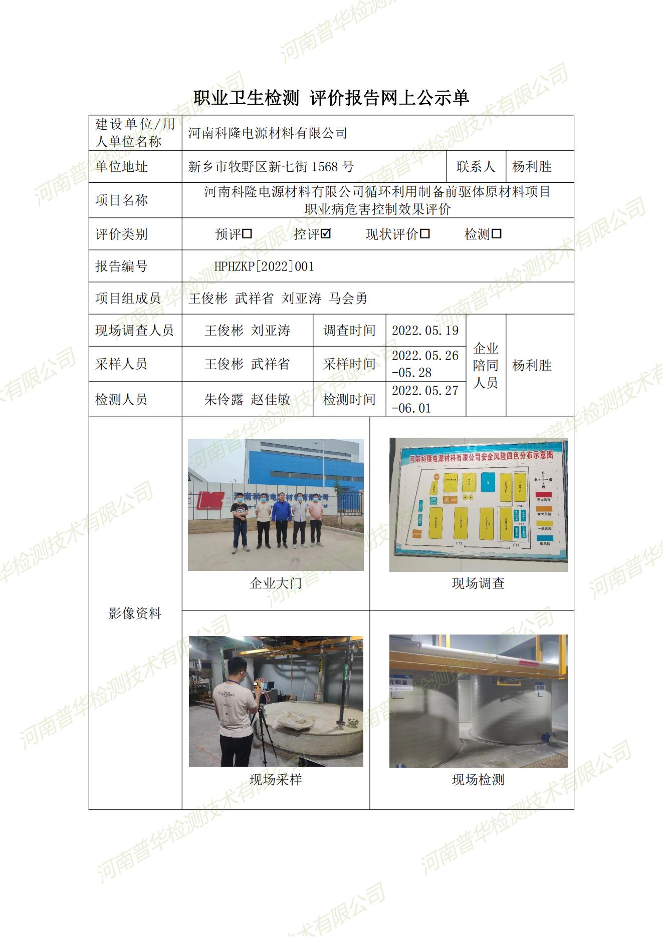 河南科隆電源材料有限公司循環(huán)利用制備前驅(qū)體原材料項(xiàng)目 職業(yè)病危害控制效果評(píng)價(jià) 點(diǎn)擊次數(shù):2097 次