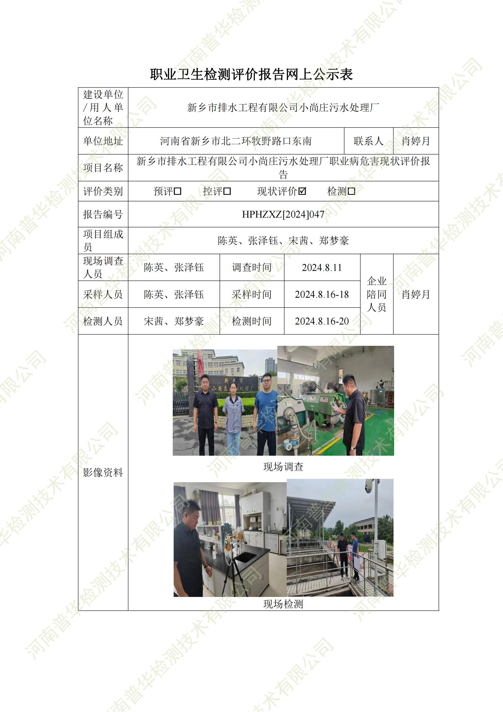 新鄉(xiāng)市排水工程有限公司小尚莊污水處理廠職業(yè)病危害現(xiàn)狀評(píng)價(jià) 點(diǎn)擊次數(shù):653 次