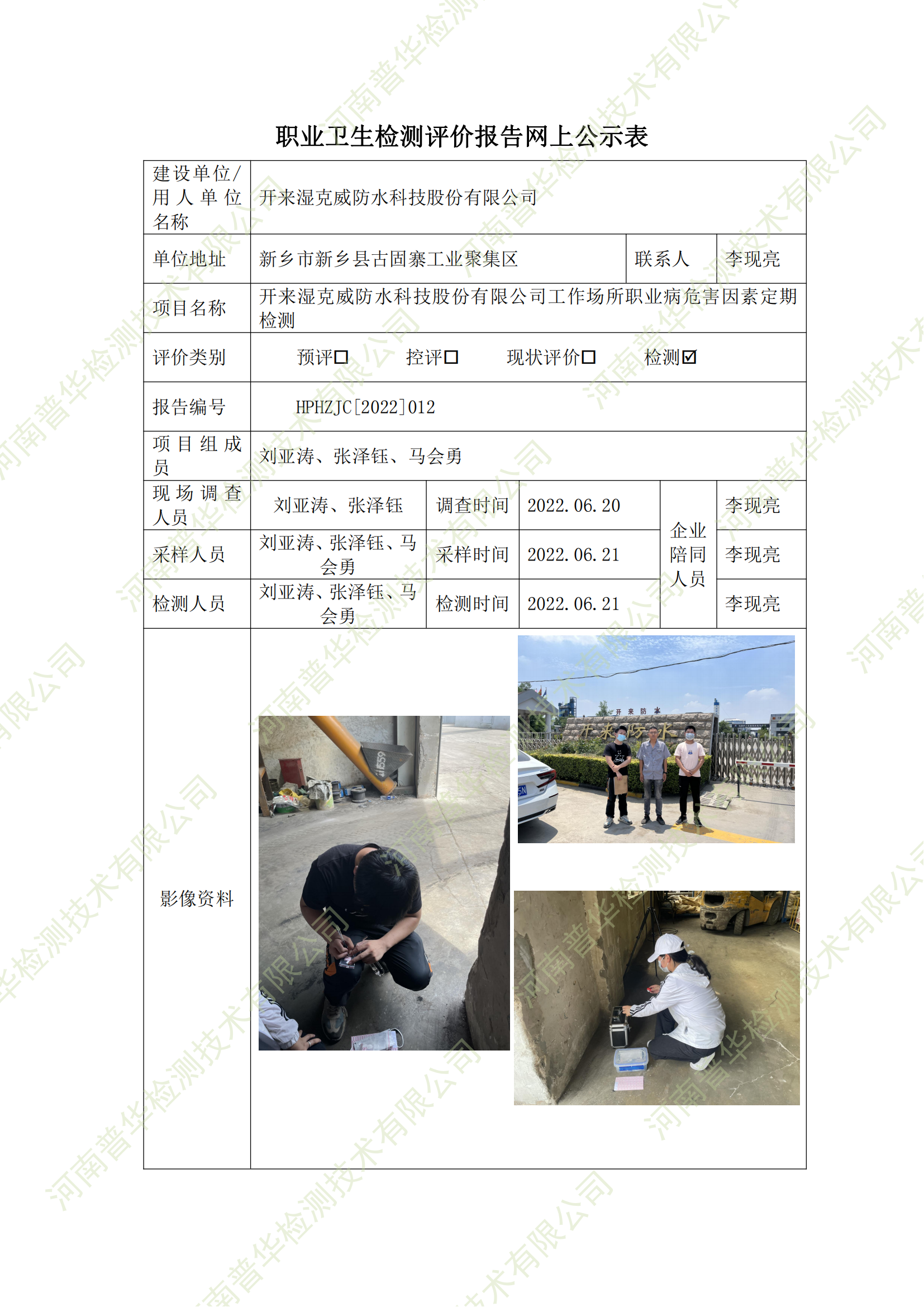 開來濕克威防水科技股份有限公司工作場所職業(yè)病危害因素定期檢測 點(diǎn)擊次數(shù):1808 次