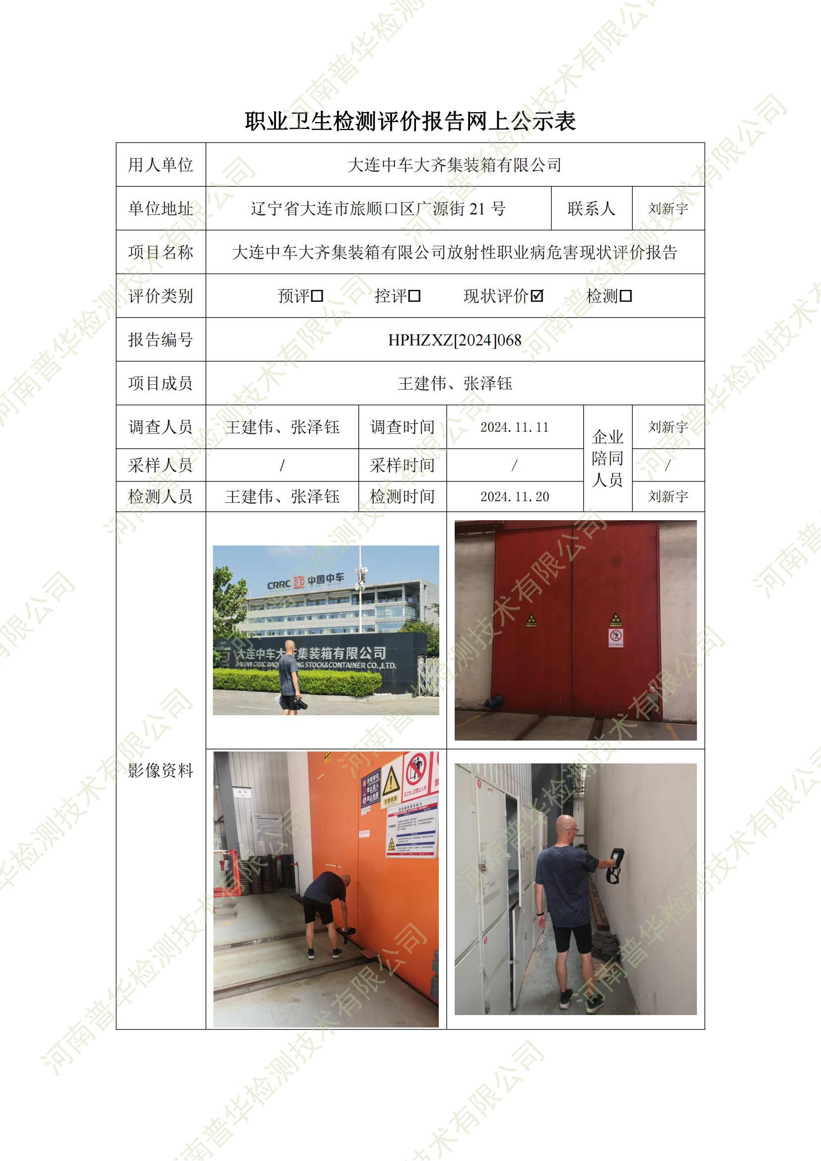 大連中車大齊集裝箱有限公司放射性職業(yè)病危害現(xiàn)狀評(píng)價(jià) 點(diǎn)擊次數(shù):467 次