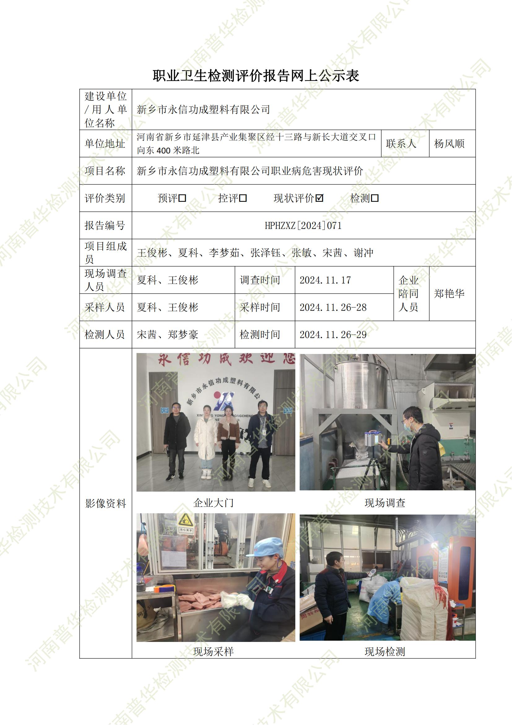 新鄉(xiāng)市永信功成塑料有限公司職業(yè)病危害現(xiàn)狀評價 點(diǎn)擊次數(shù):420 次