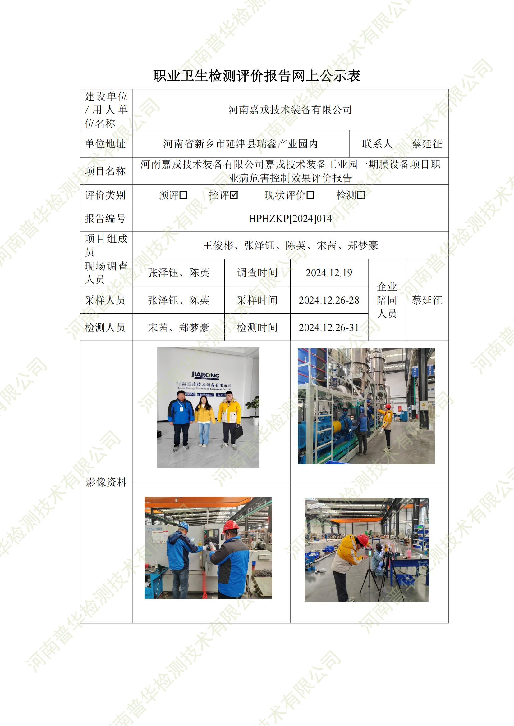 河南嘉戎技術(shù)裝備有限公司嘉戎技術(shù)裝備工業(yè)園一期膜設(shè)備項(xiàng)目職業(yè)病危害控制效果評(píng)價(jià) 點(diǎn)擊次數(shù):318 次
