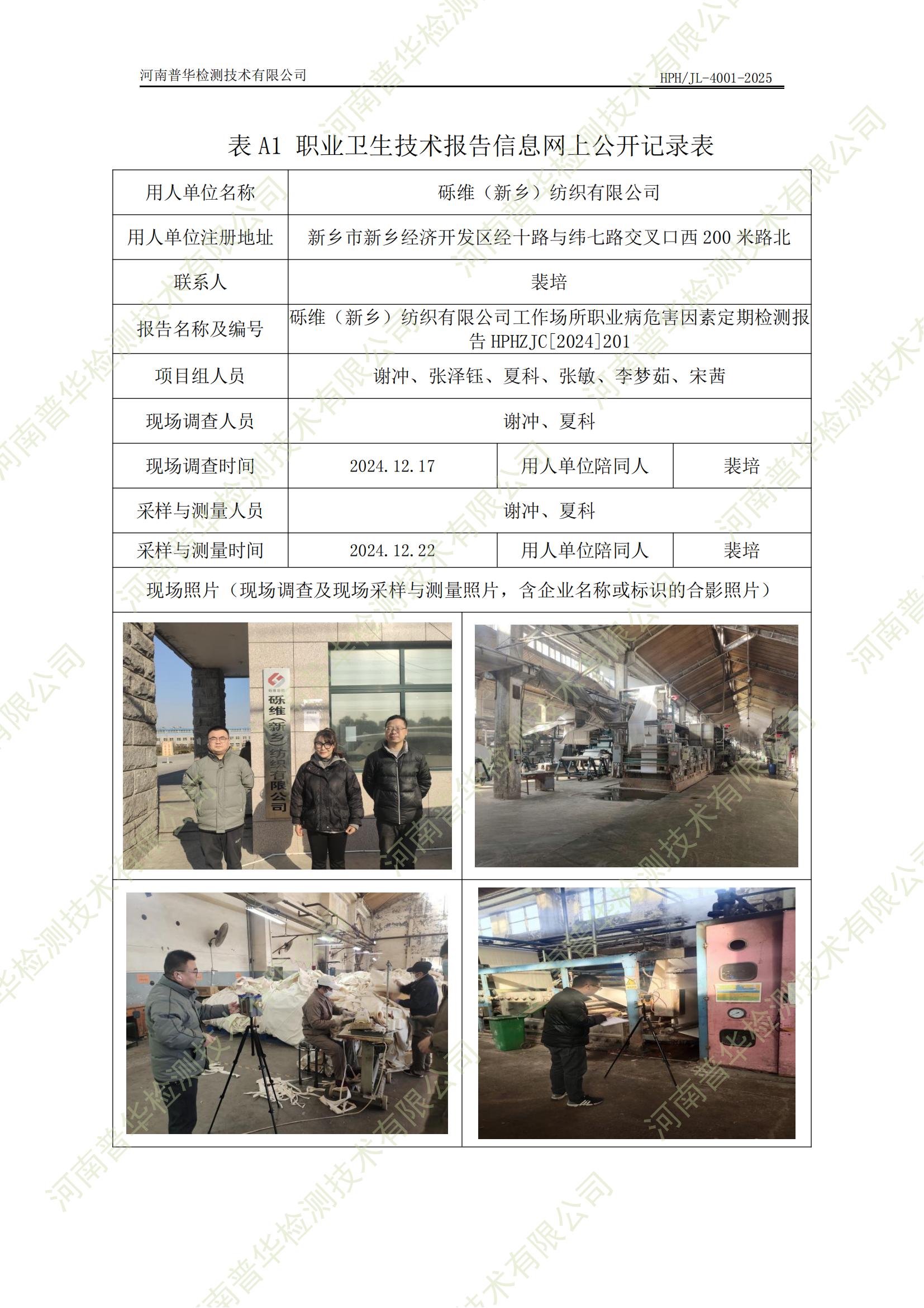 礫維(新鄉(xiāng))紡織有限公司工作場所職業(yè)病危害因素定期檢測 點擊次數(shù):296 次