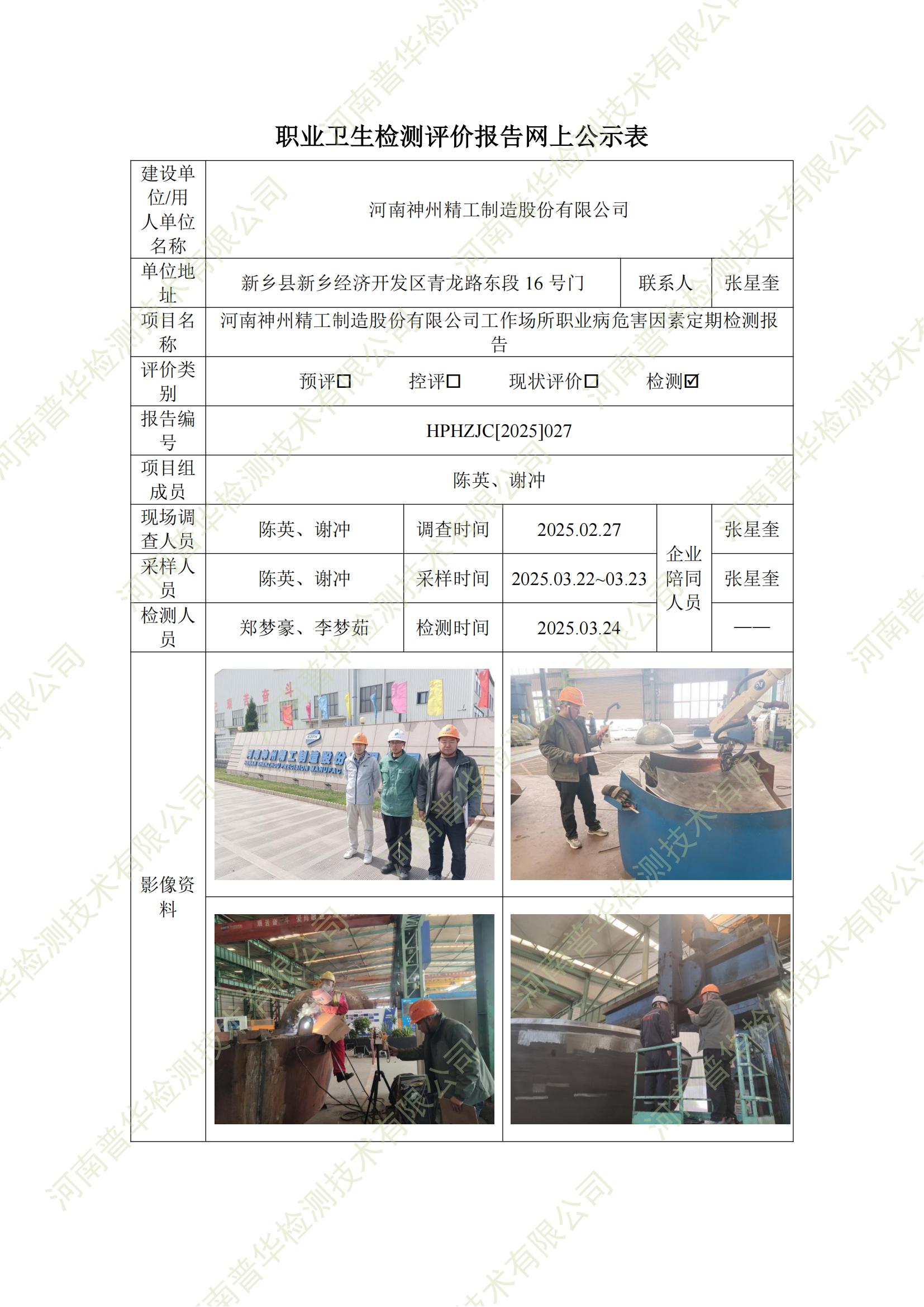 河南神州精工制造股份有限公司工作場(chǎng)所職業(yè)病危害因素定期檢測(cè) 點(diǎn)擊次數(shù):173 次