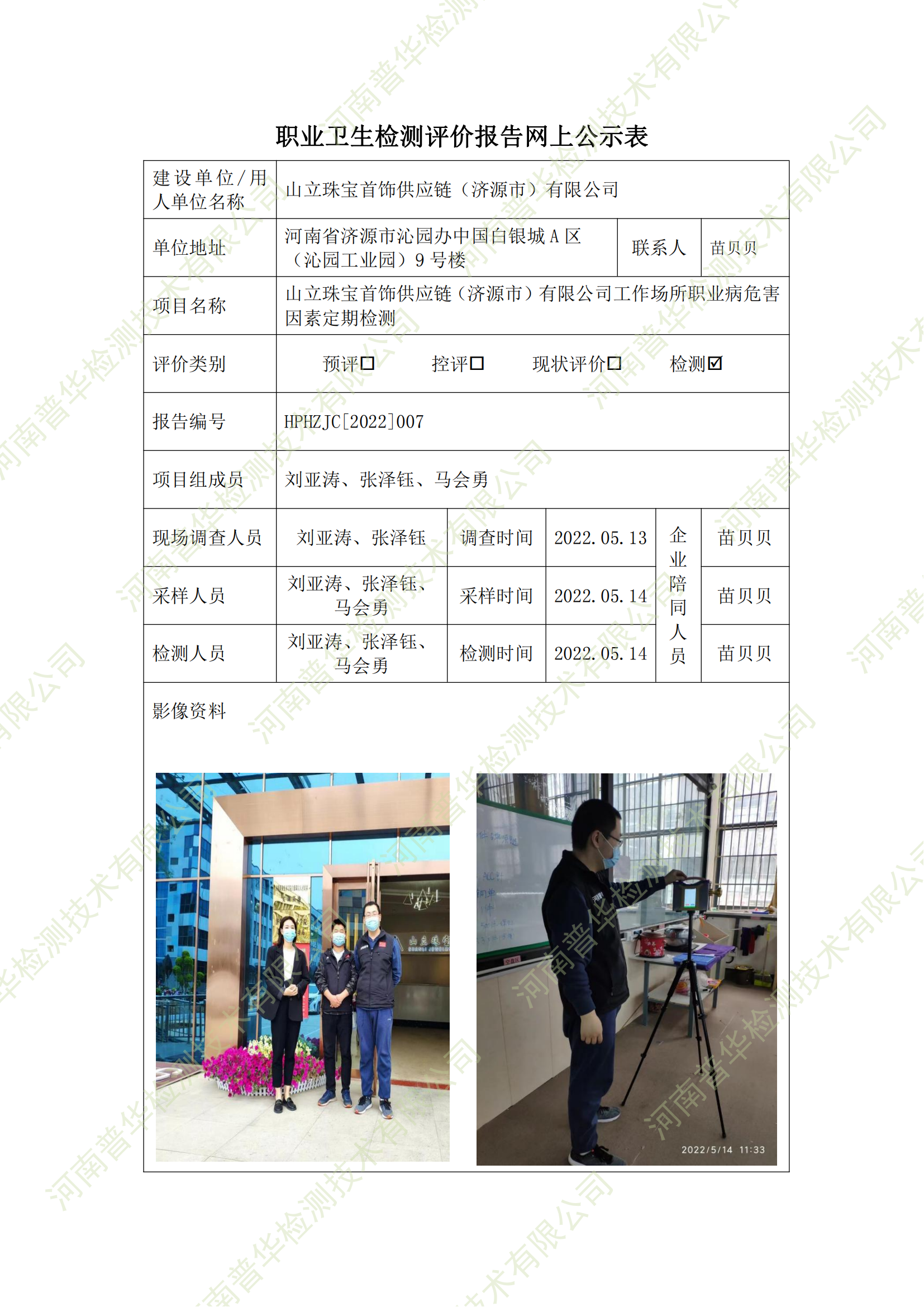 山立珠寶首飾供應(yīng)鏈(濟(jì)源市)有限公司工作場所職業(yè)病危害因素定期檢測 點(diǎn)擊次數(shù):1972 次