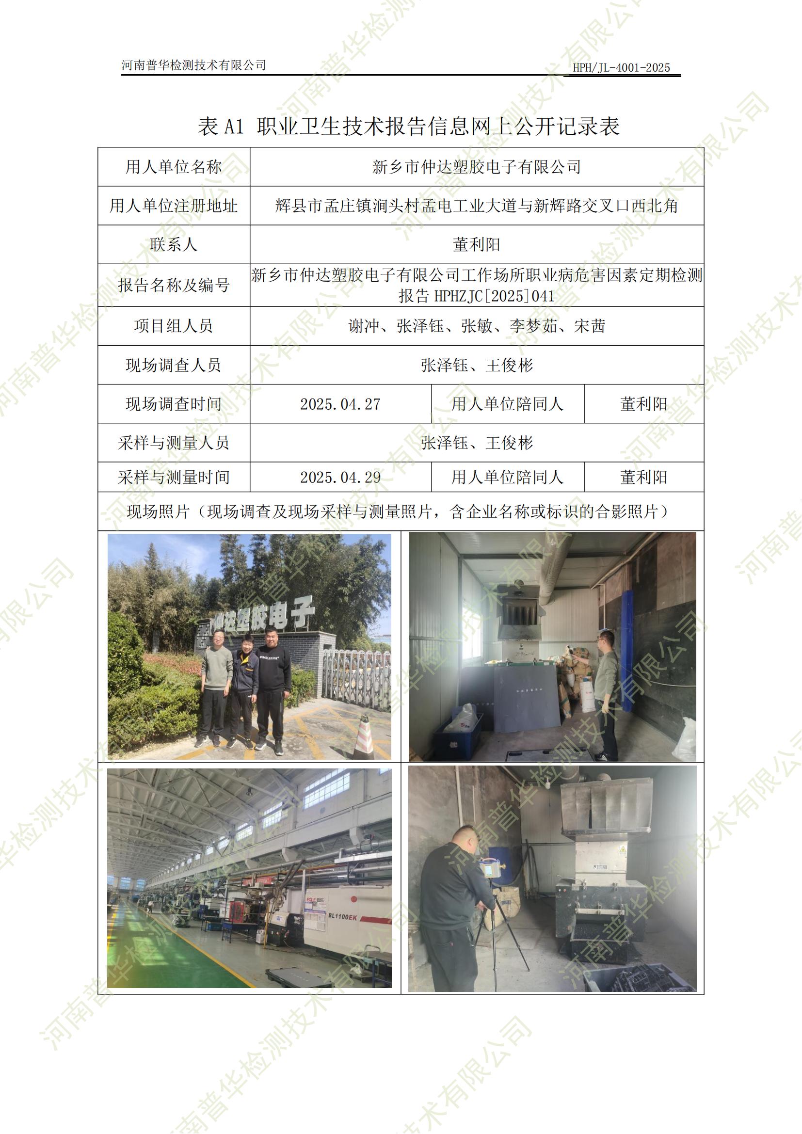 新鄉(xiāng)市仲達(dá)塑膠電子有限公司工作場(chǎng)所職業(yè)病危害因素定期檢測(cè) 點(diǎn)擊次數(shù):150 次