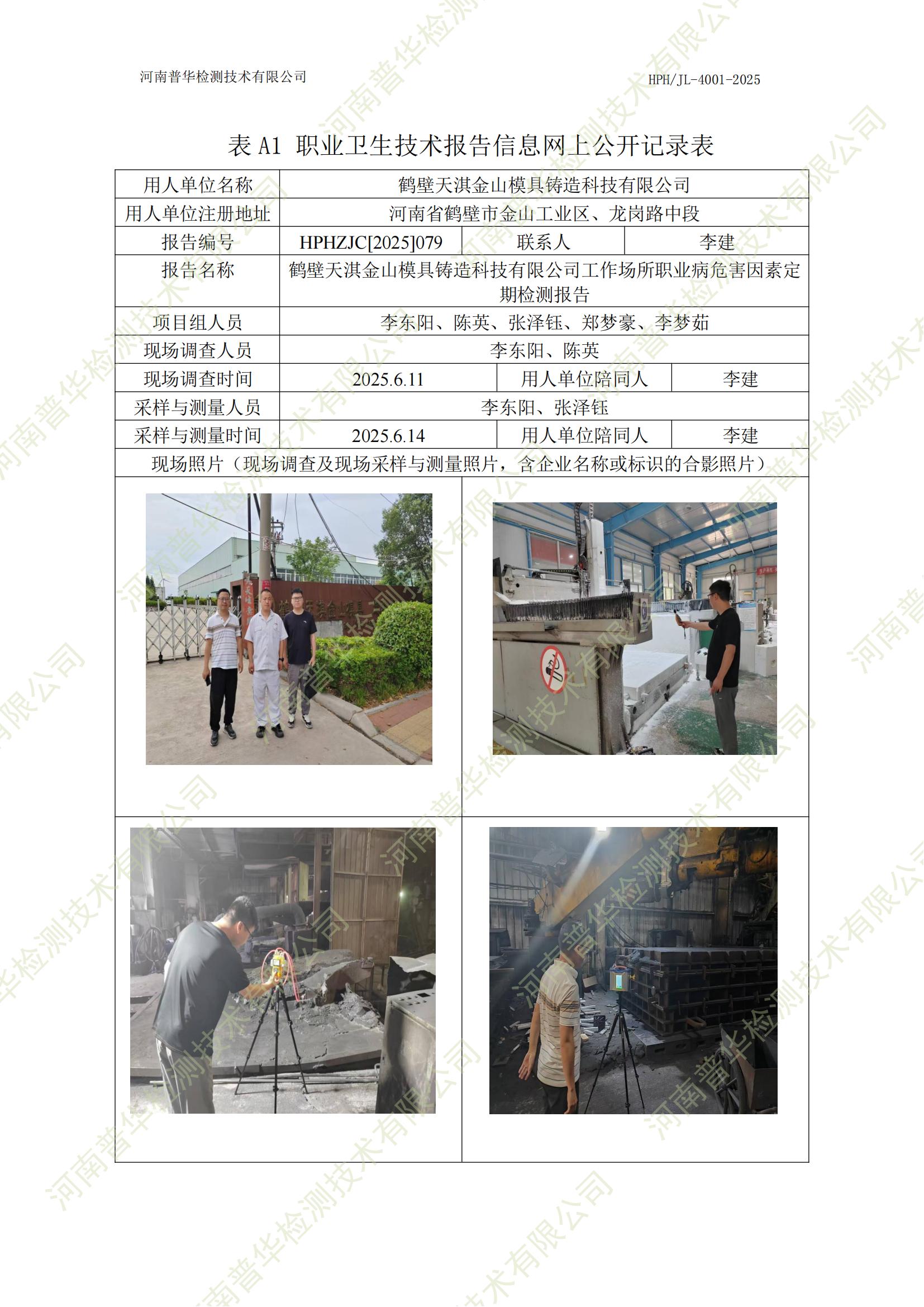 鶴壁天淇金山模具鑄造科技有限公司工作場所職業(yè)病危害因素定期檢測 點擊次數(shù):103 次